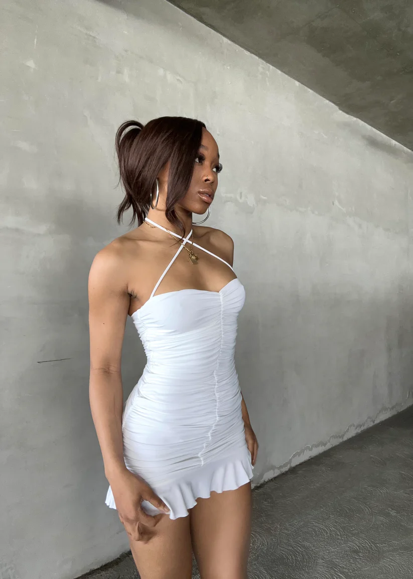Vestido blanco ajustado con fruncido, minivestido blanco para fiesta de bienvenida Y2443