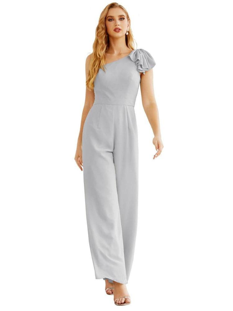 Mono largo de gasa de un solo hombro para mujer, vestido formal de noche, vestido largo de dama de honor, pantalones para fiesta de boda SEA28034