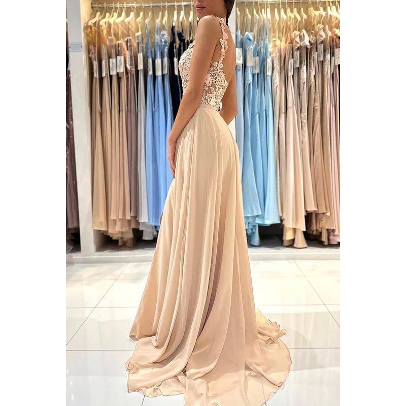 Robe de bal fourreau/colonne en mousseline de soie sans manches avec appliques