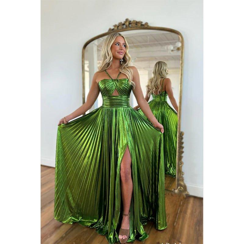 Robe de soirée longue et élégante à bretelles spaghetti et coupe trapèze