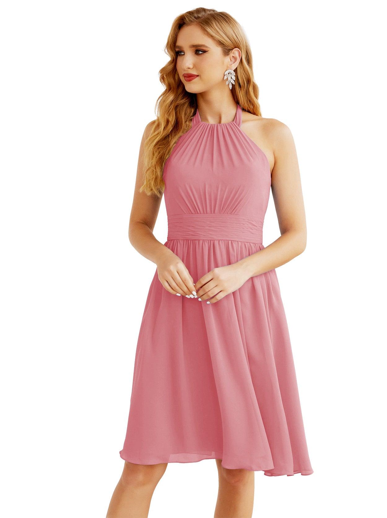 Robe de demoiselle d'honneur courte en mousseline de soie, dos nu, sans manches, robe de soirée formelle, dos nu, Baoleely 28023