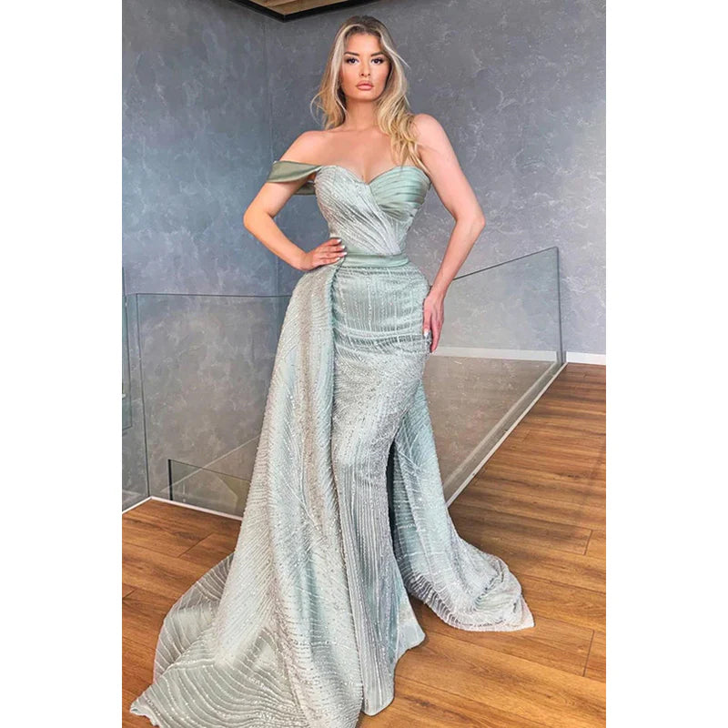 Robe de bal sirène élégante et luxueuse à épaules dénudées et manches courtes