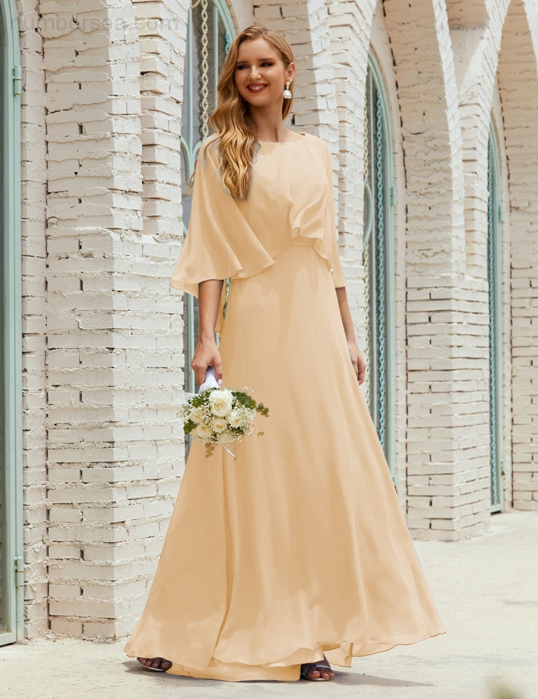 Robe de demoiselle d'honneur Sunnderly pour femme, manches longues, col en V, en mousseline, robe de cérémonie pour mariage SY28018