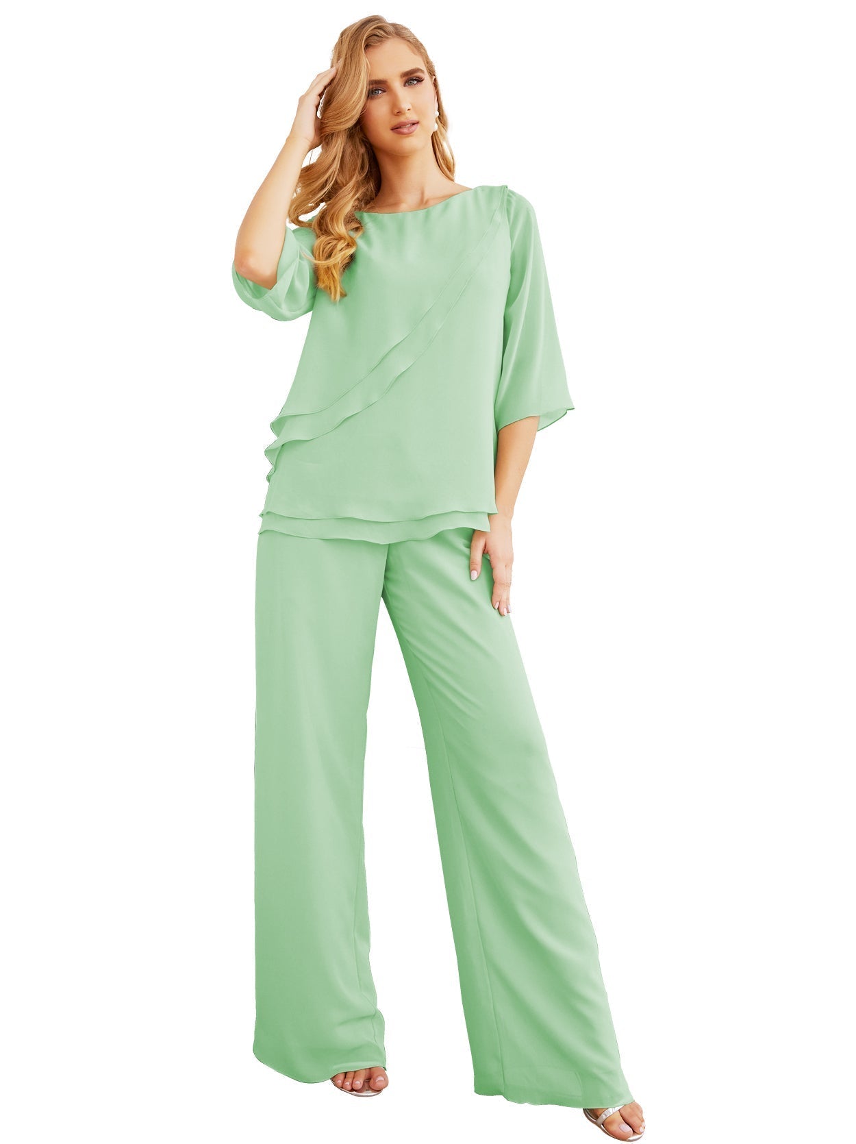 Baoleely Élégante robe mère de la mariée 2 pièces, grande taille, pantalon, volants, couches argentées, peignoir 28064