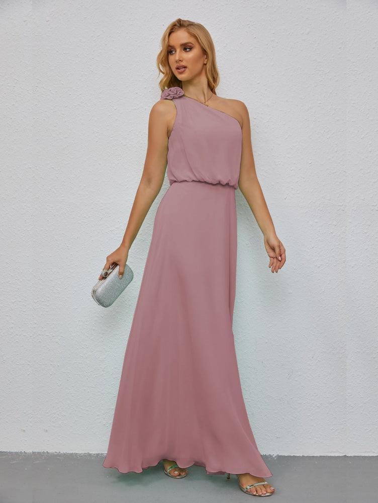 Robe de demoiselle d'honneur longue sans manches à volants et à une épaule, coupe trapèze, robe de soirée formelle fendue sur le côté 28080