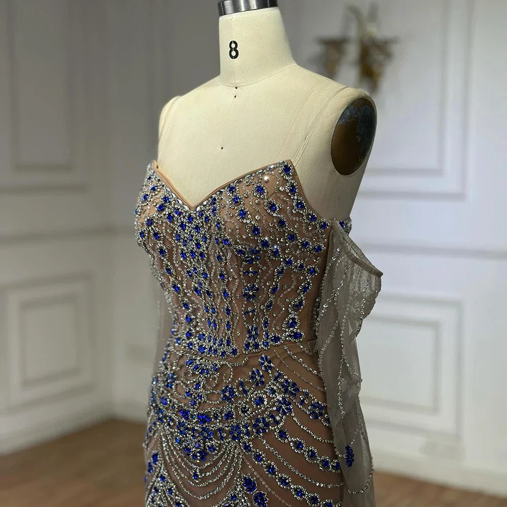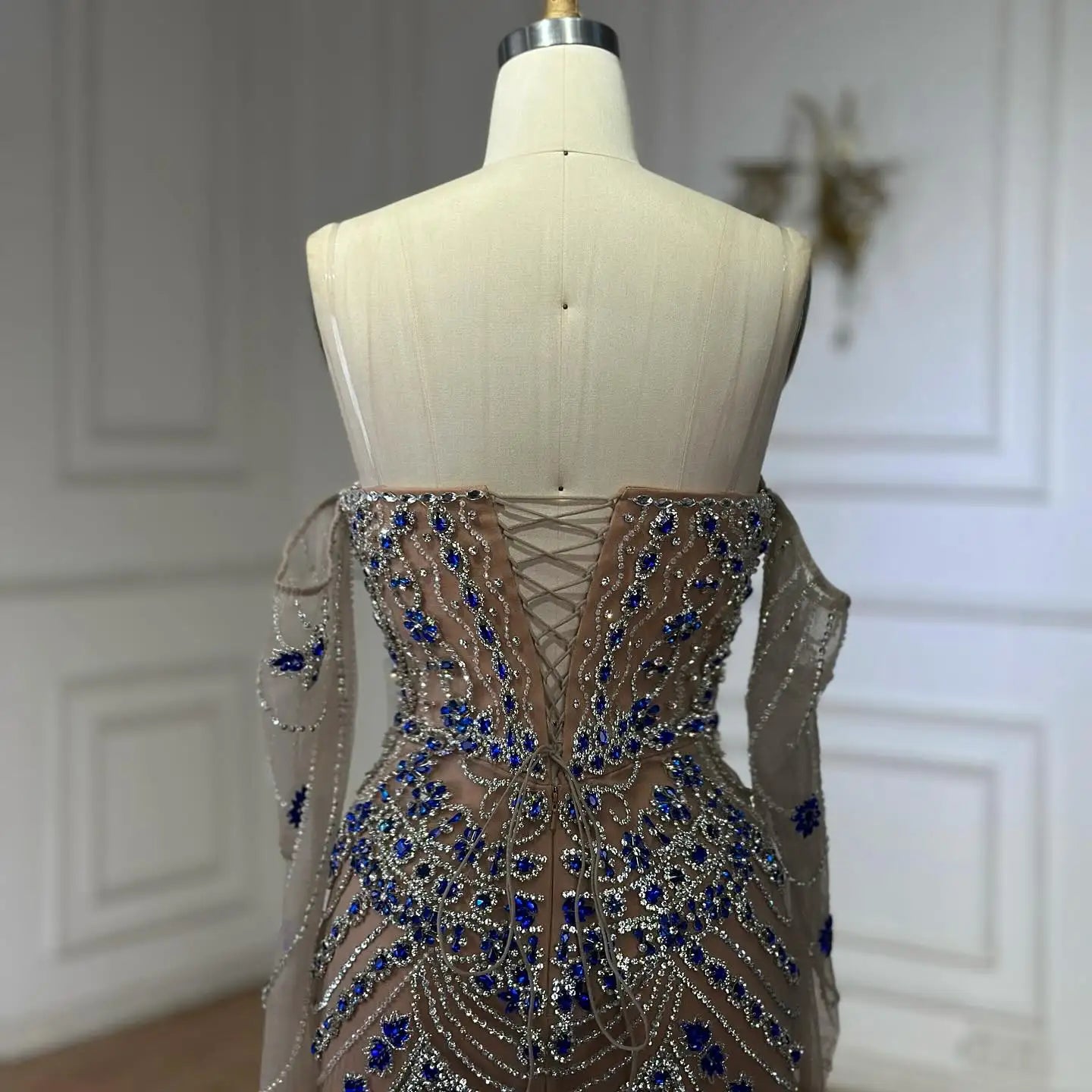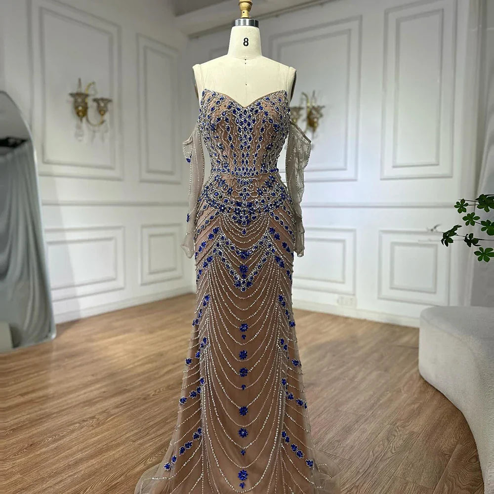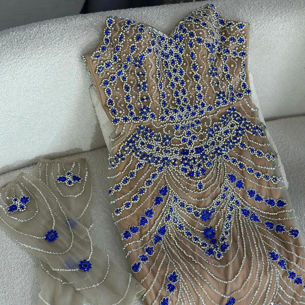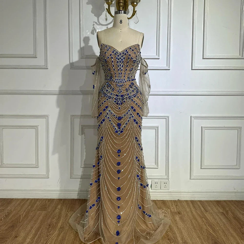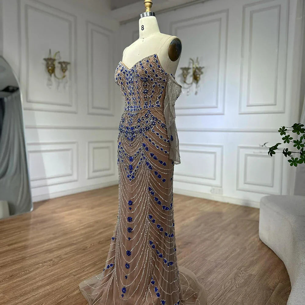 Robe de soirée luxueuse à perles bleues, idéale pour une occasion spéciale, LA72858