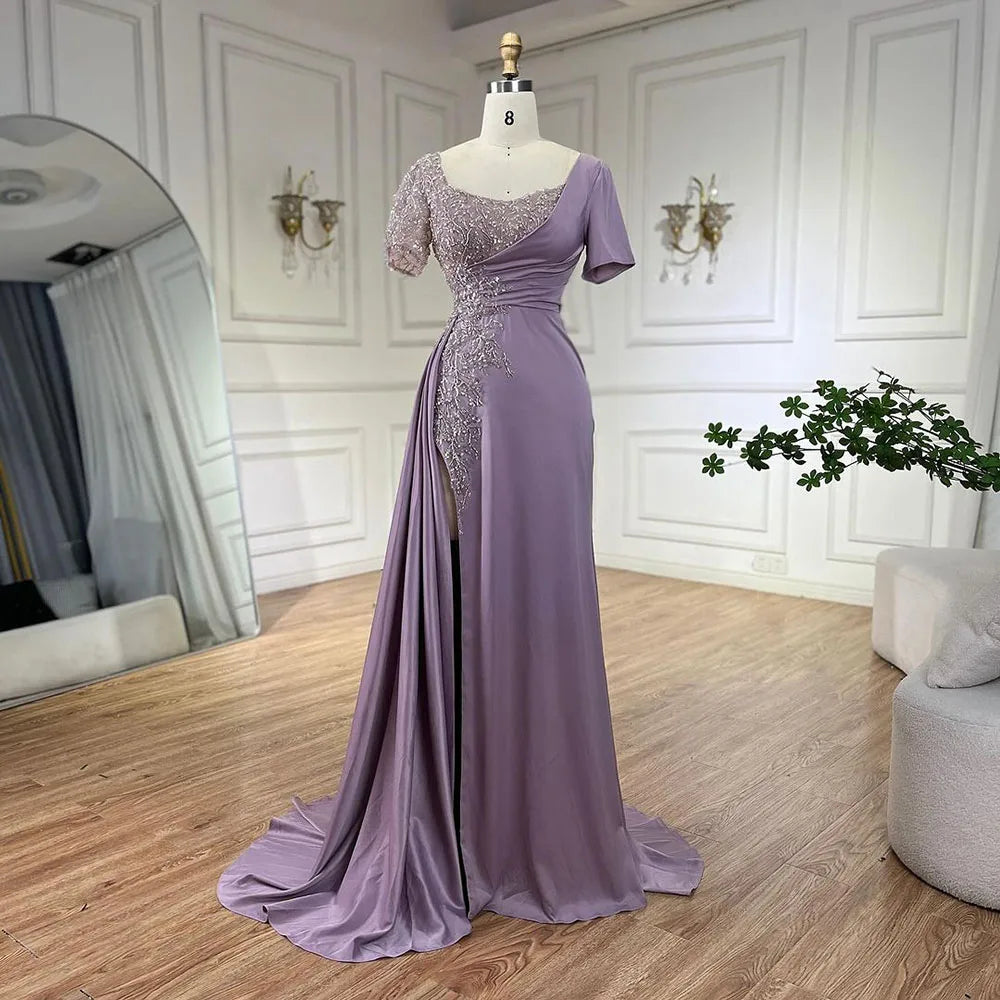 Robe de soirée sirène élégante en satin lilas, luxueuse et grise, style Dubaï, pour femme, tenue de mariage, LA72583