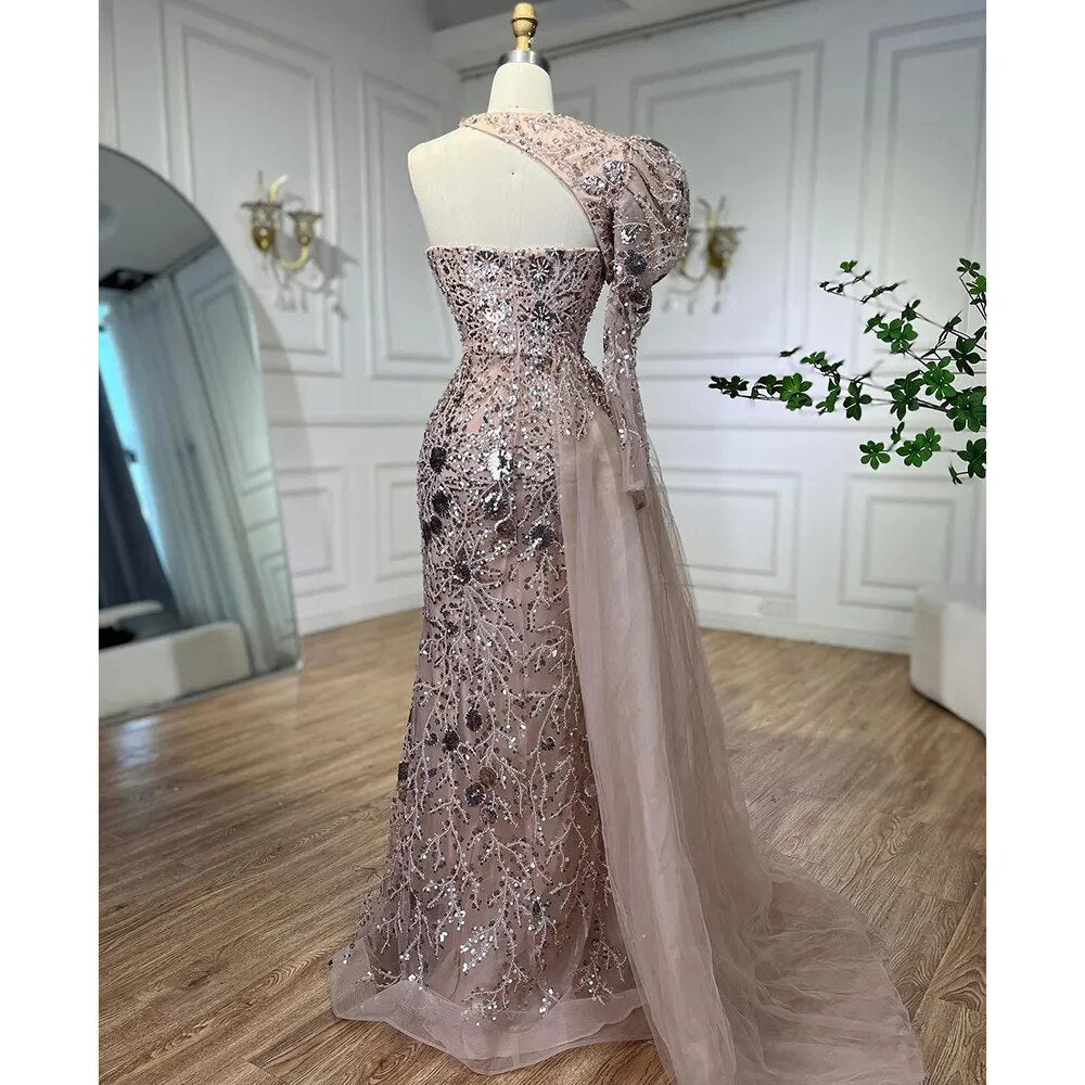 Robe de soirée sirène rose élégante, asymétrique, fendue, avec perles, pour femme, tenue de mariage, modèle 2025, LA72188