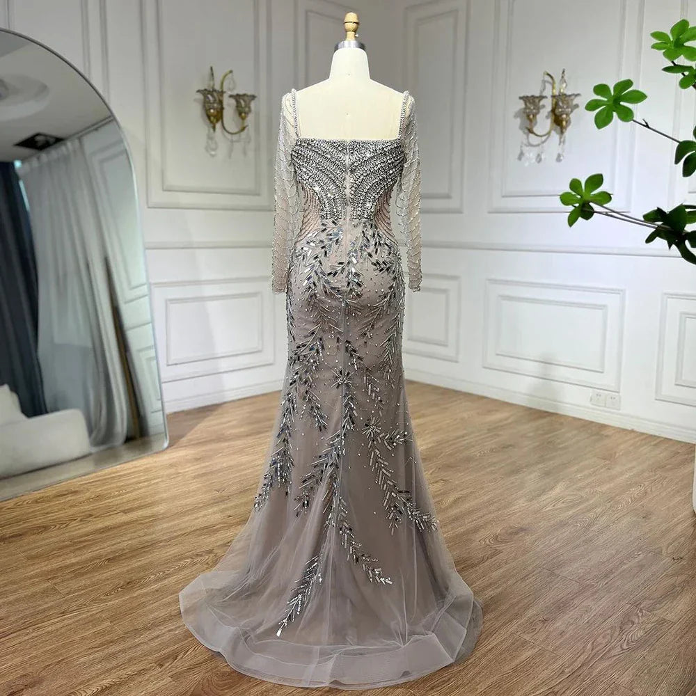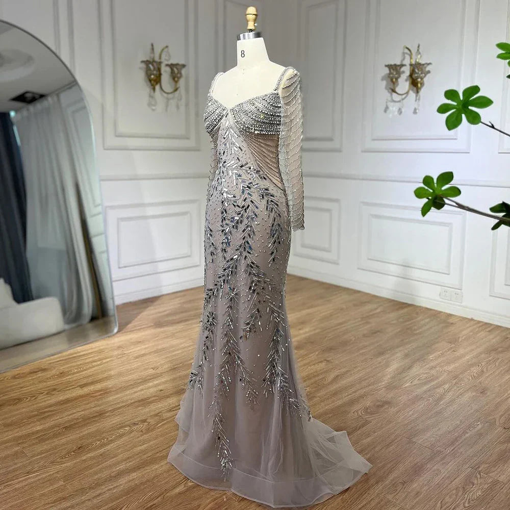 Robe de soirée élégante style sirène, couleur argent, couleur chair, luxueuse, perlée, style Dubaï, pour femme, tenue de mariage, 2025, LA72513