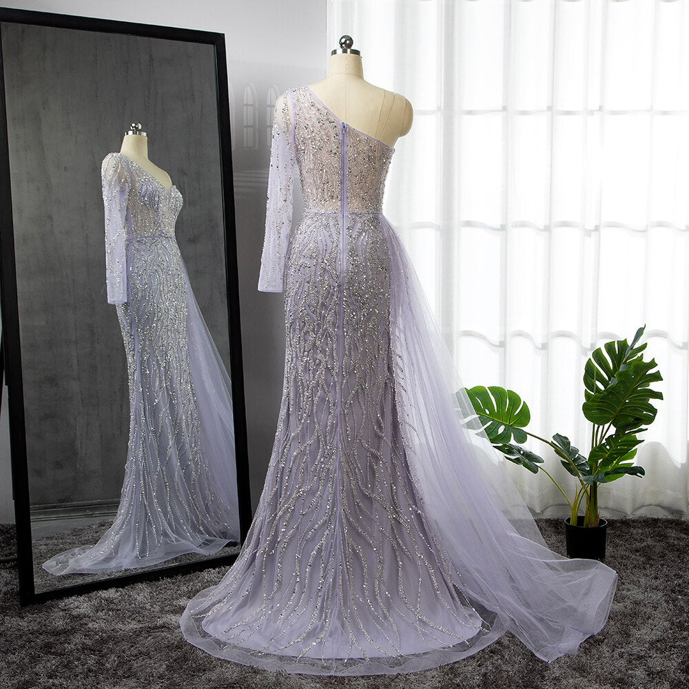 Robe de soirée sirène bleue, élégante et sexy, asymétrique, avec perles, luxueuse, pour femme, modèle LA71629, 2025