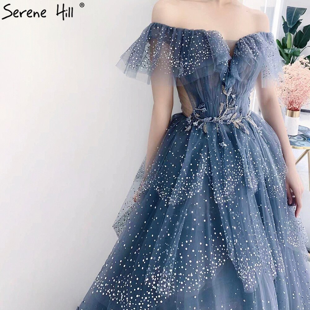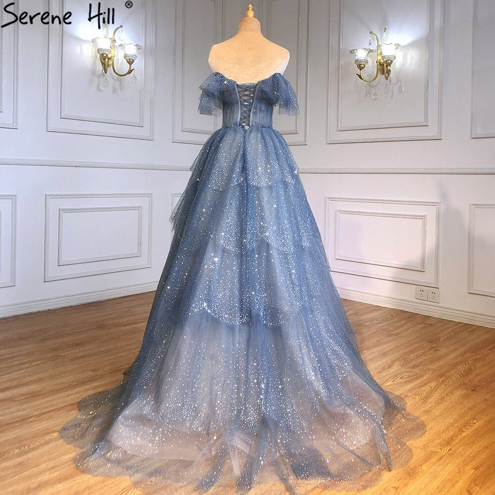Robe de soirée bleue en forme de cœur, tenue de soirée sexy à plusieurs niveaux et perles, idéale pour les fêtes, modèle LA71450, 2025