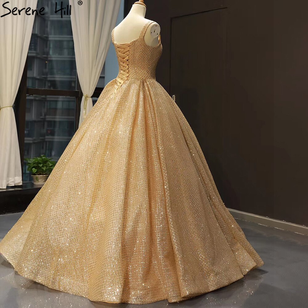 Robe de mariée luxueuse à paillettes dorées, robe de mariée sexy à bretelles spaghetti, HM66731, sur mesure, 2025