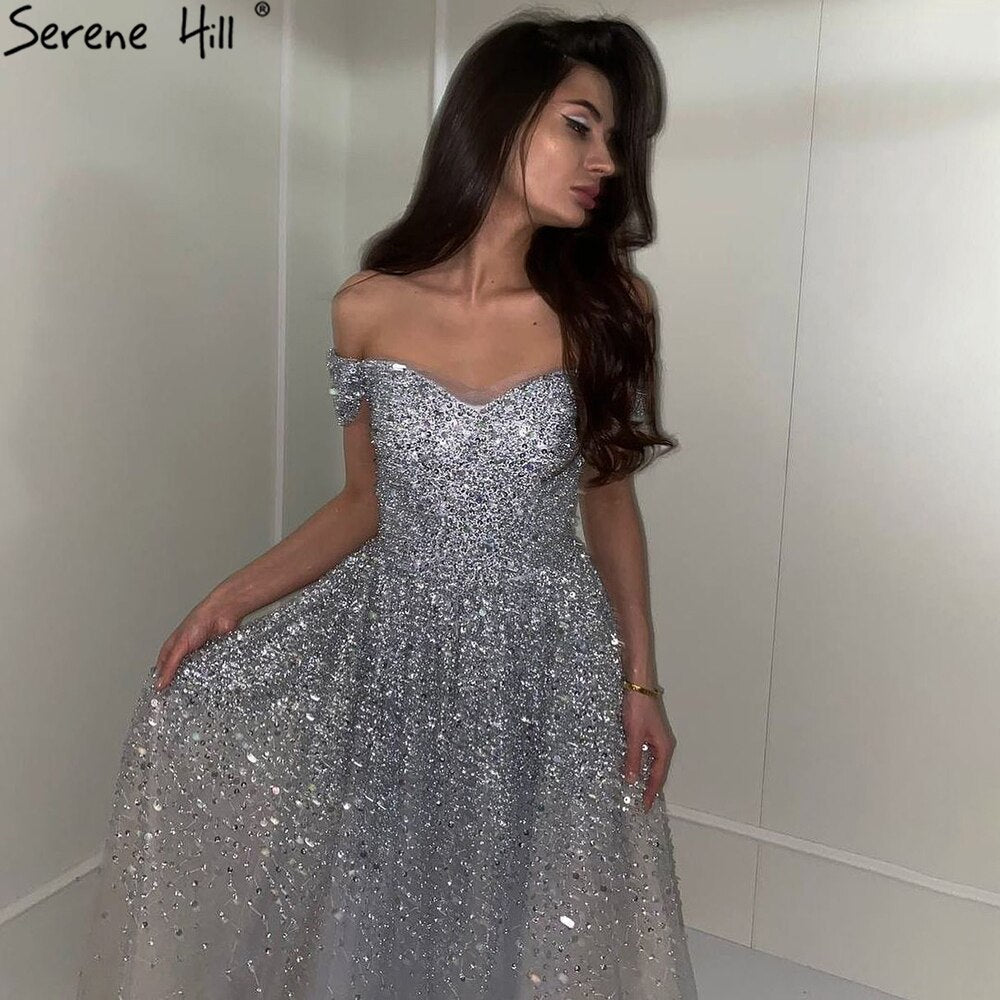 Robe de soirée trapèze luxueuse grise, tenue sexy à perles et paillettes, idéale pour une soirée de mariage, modèle 2025, LA71188