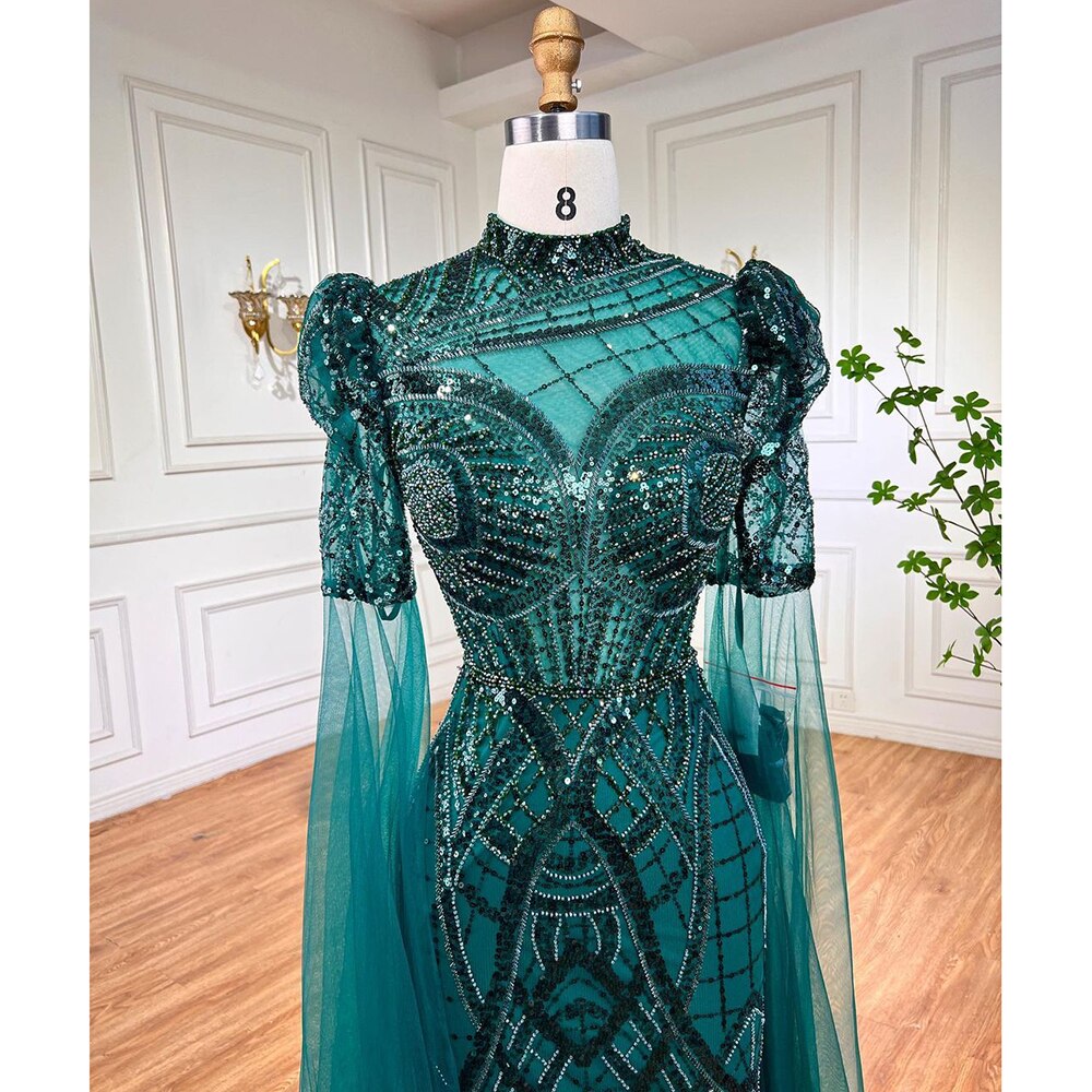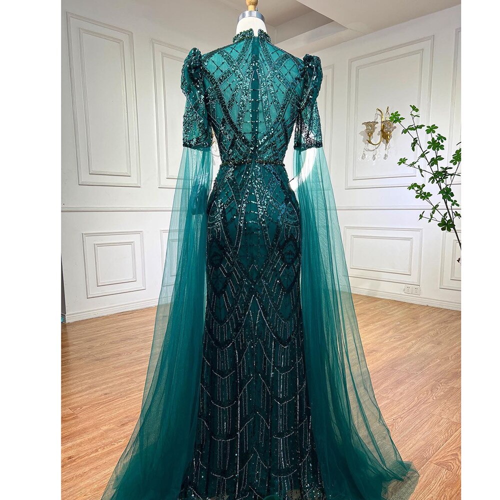 Robe de soirée de luxe vert émeraude à manches cape, élégante robe de soirée de mariage pour femmes, LA72077, 2025