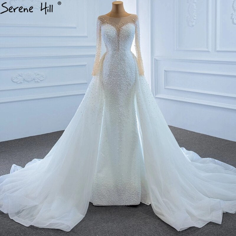 Robe de mariée sirène de luxe ivoire avec traîne amovible, robe de mariée ornée de perles, sur mesure, HM67182, 2025