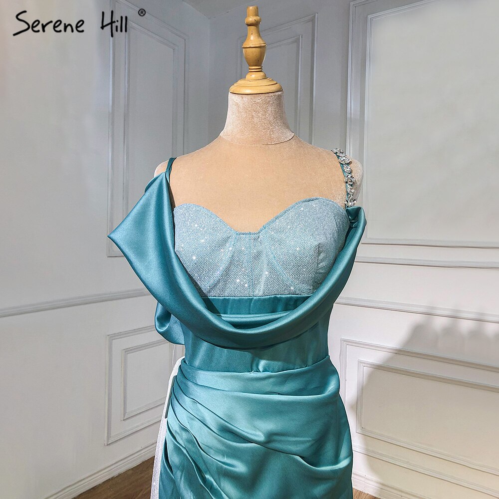 Robe de soirée sirène fendue à la menthe, asymétrique épaule dénudée, diamants, sexy, pour femme, LA70875