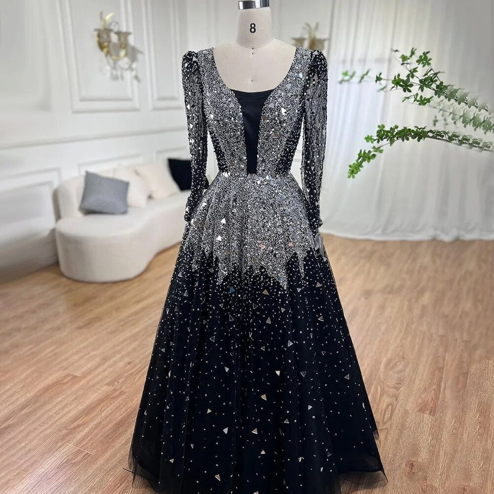 Robe de soirée noire style musulman, coupe trapèze, paillettes et perles, luxueuse, pour femme, tenue de mariage, modèle 2025, LA71214