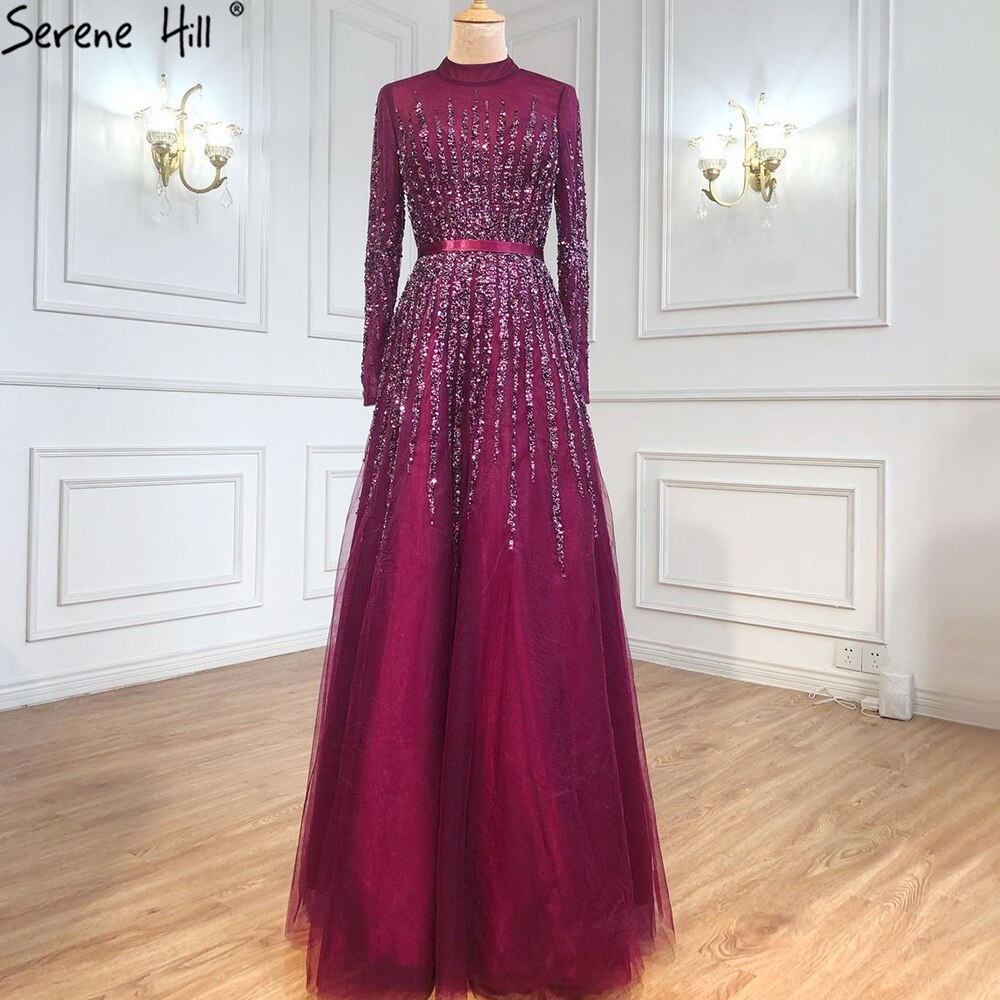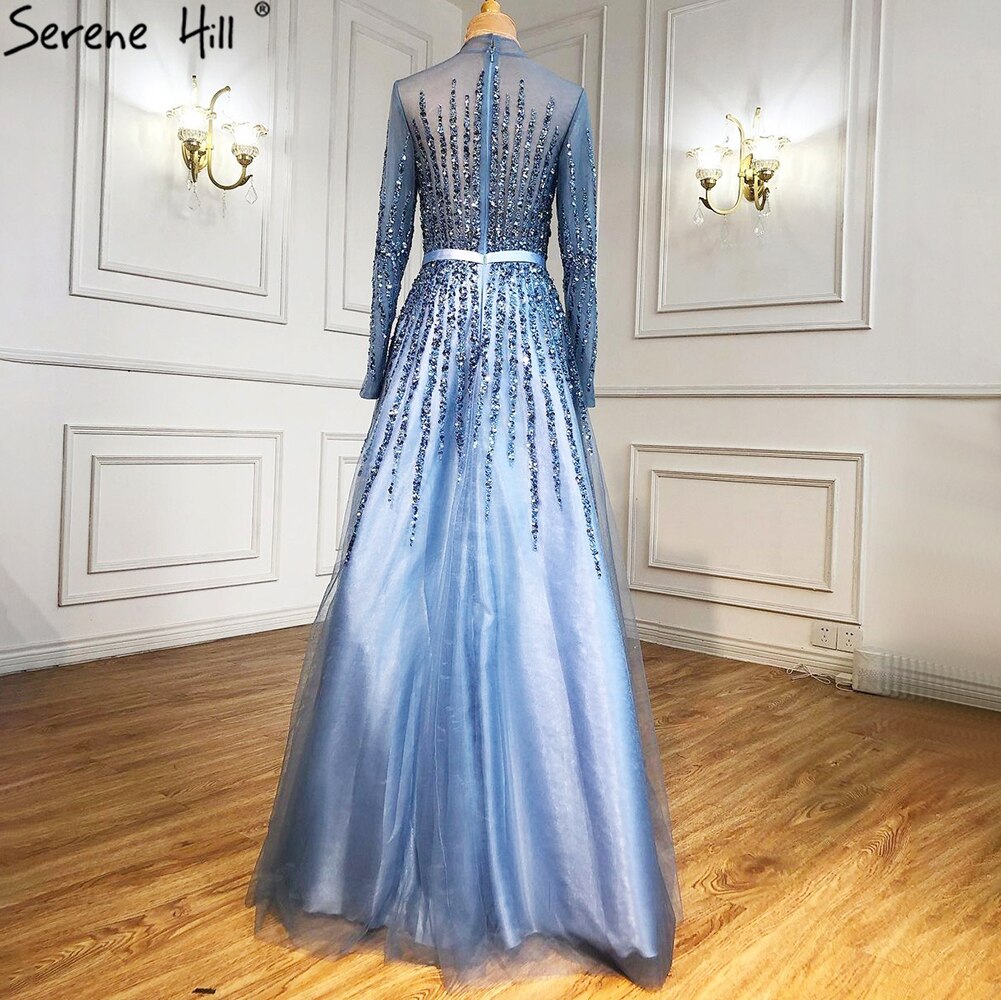 Robe de soirée trapèze de luxe bleue à perles et cristaux pour femmes musulmanes, tenue de soirée de luxe, LA70927H, 2025