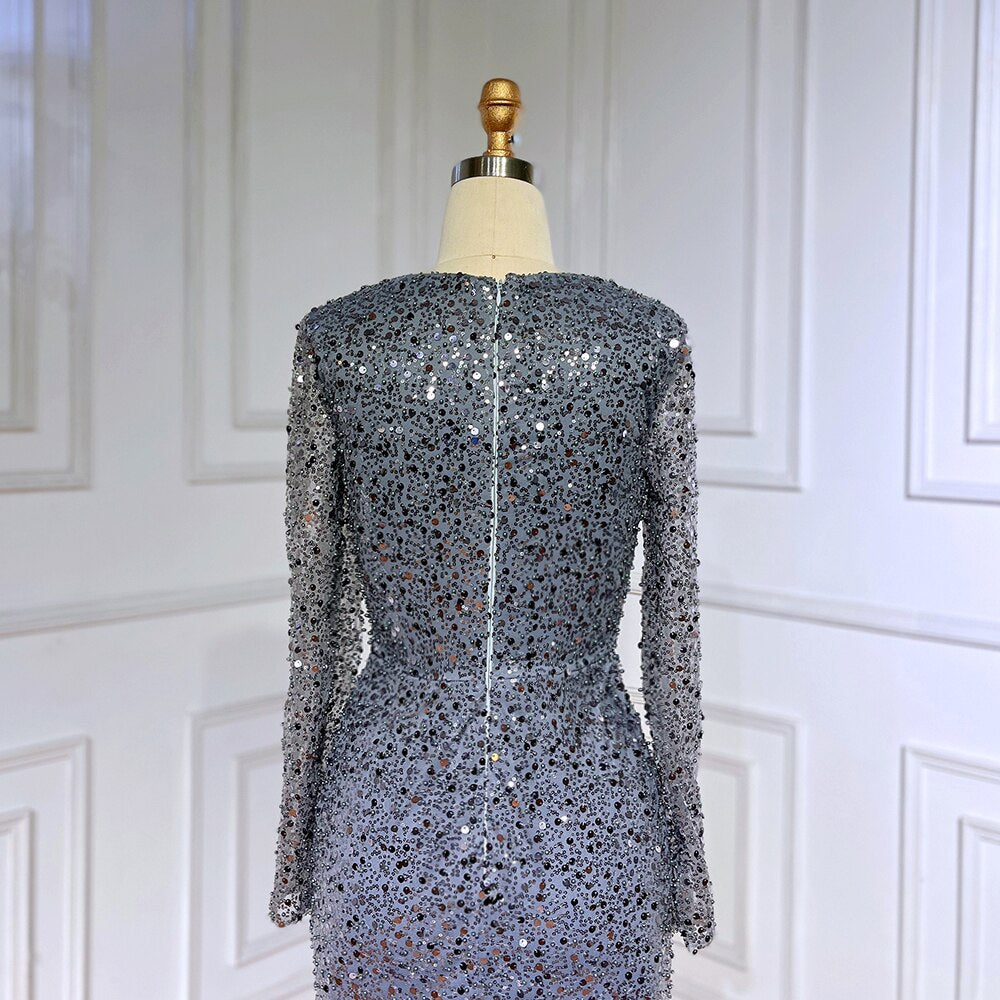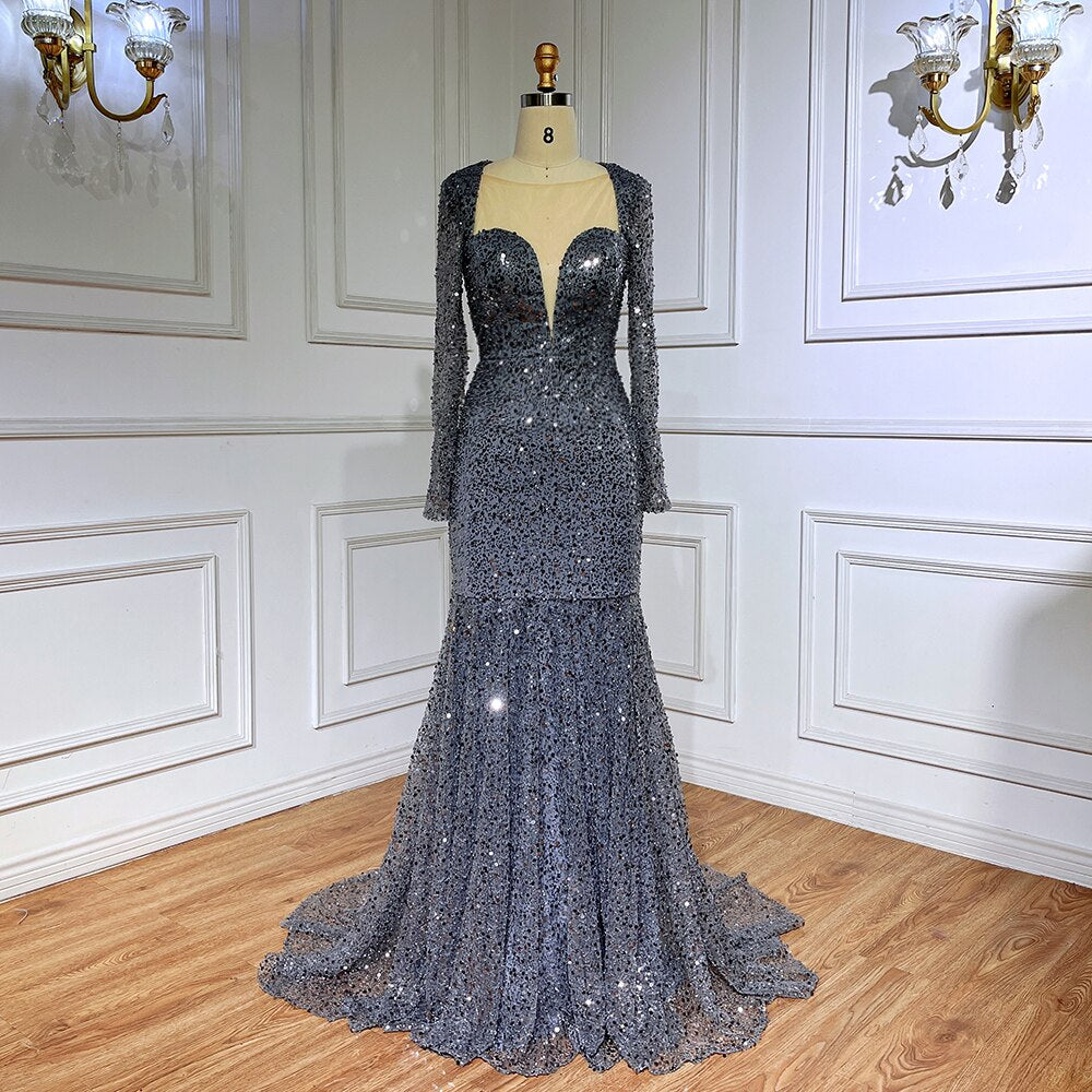 Robe de soirée de luxe style sirène bleu musulman, paillettes scintillantes et perles, pour femmes, fête de mariage, 2025, LA71486