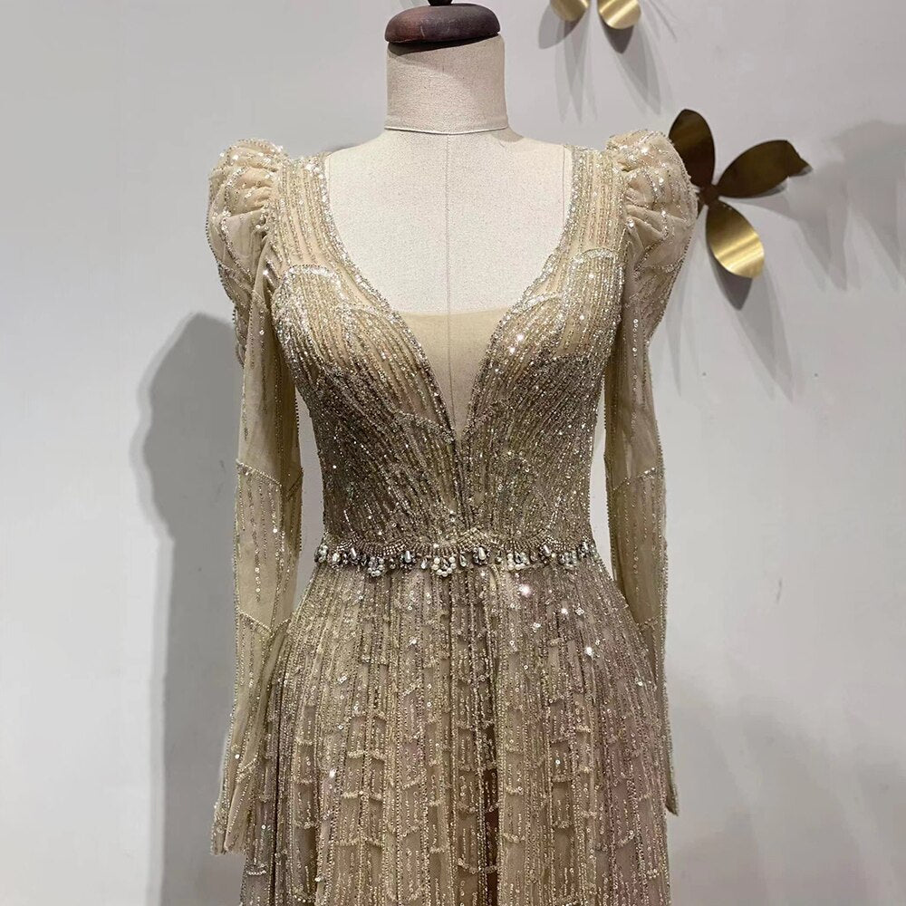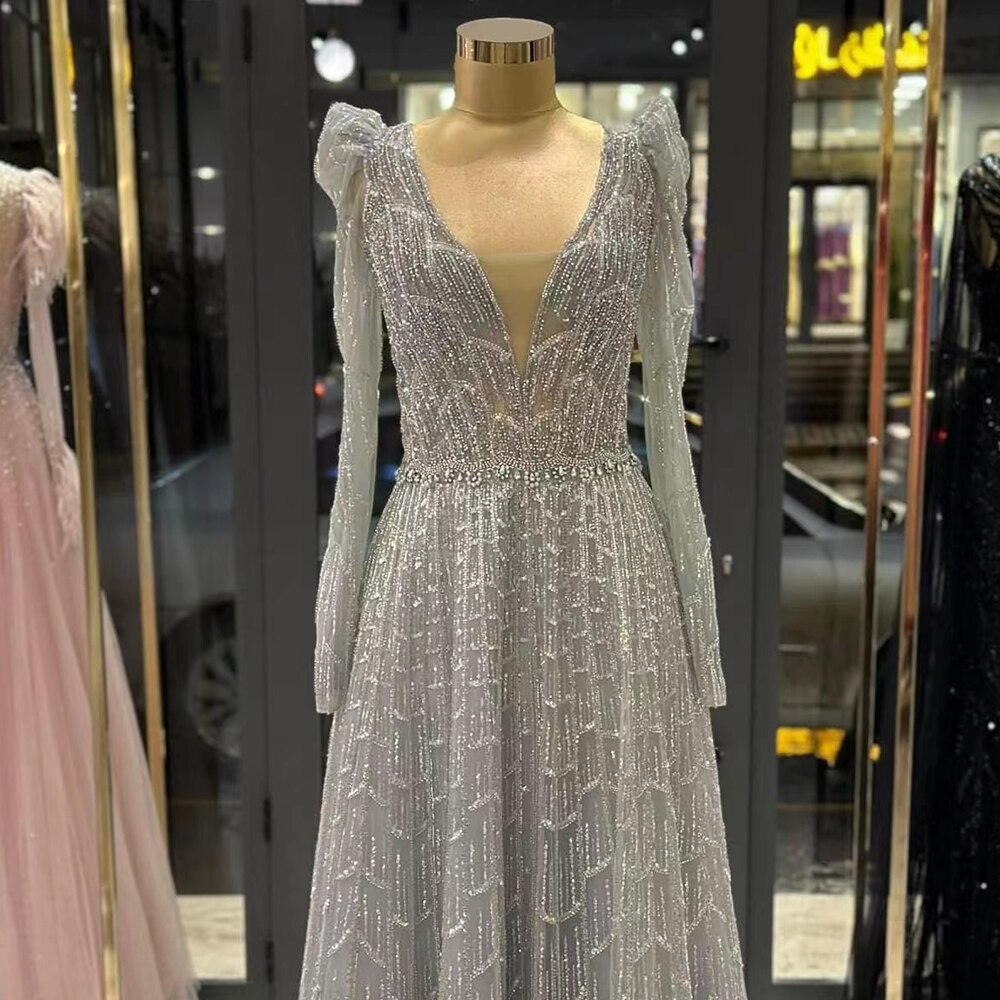 Robe de soirée longue style musulman, coupe trapèze, col en V, perles, style Dubaï, 2025, pour femmes, fête de mariage, LA71940