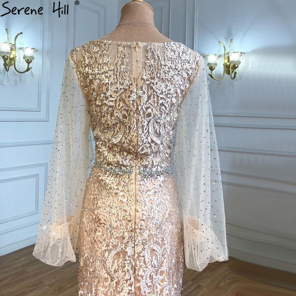 Robe de soirée de luxe style sirène, style musulman, champagne, élégante, perlée, pour femmes, fête de mariage, LA71225, 2025