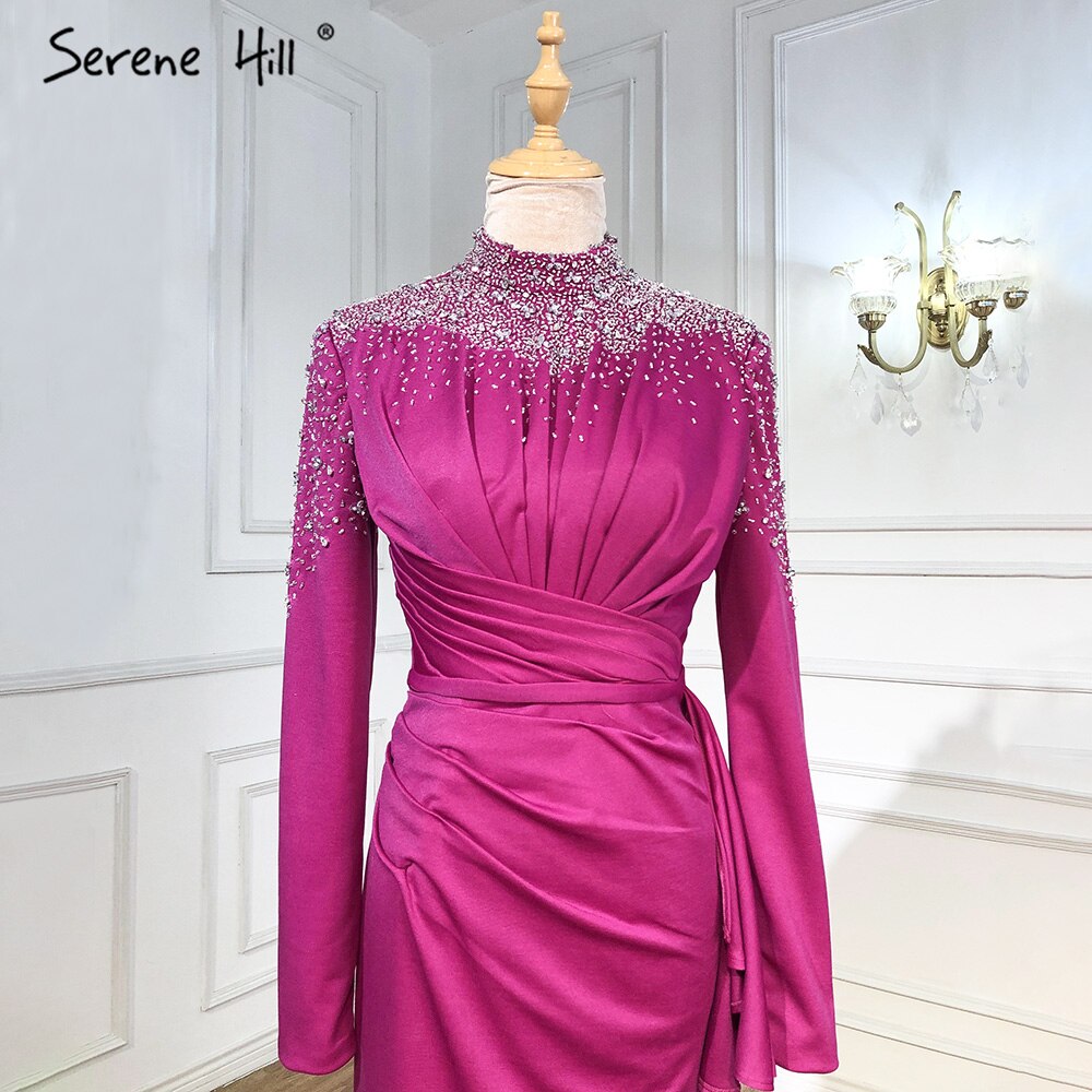 Robe de soirée sirène fuchsia musulmane, élégante, avec perles, pour mariage, collection 2025, LA71004