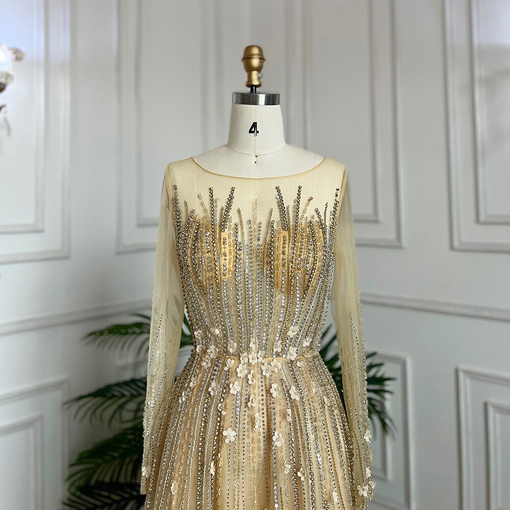 Robe de soirée longue de luxe pour femmes musulmanes, coupe trapèze, ornée de perles et de cristaux, pour fête de mariage, 2025, LA71957