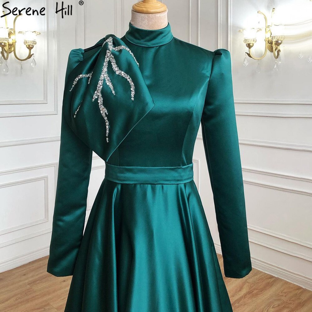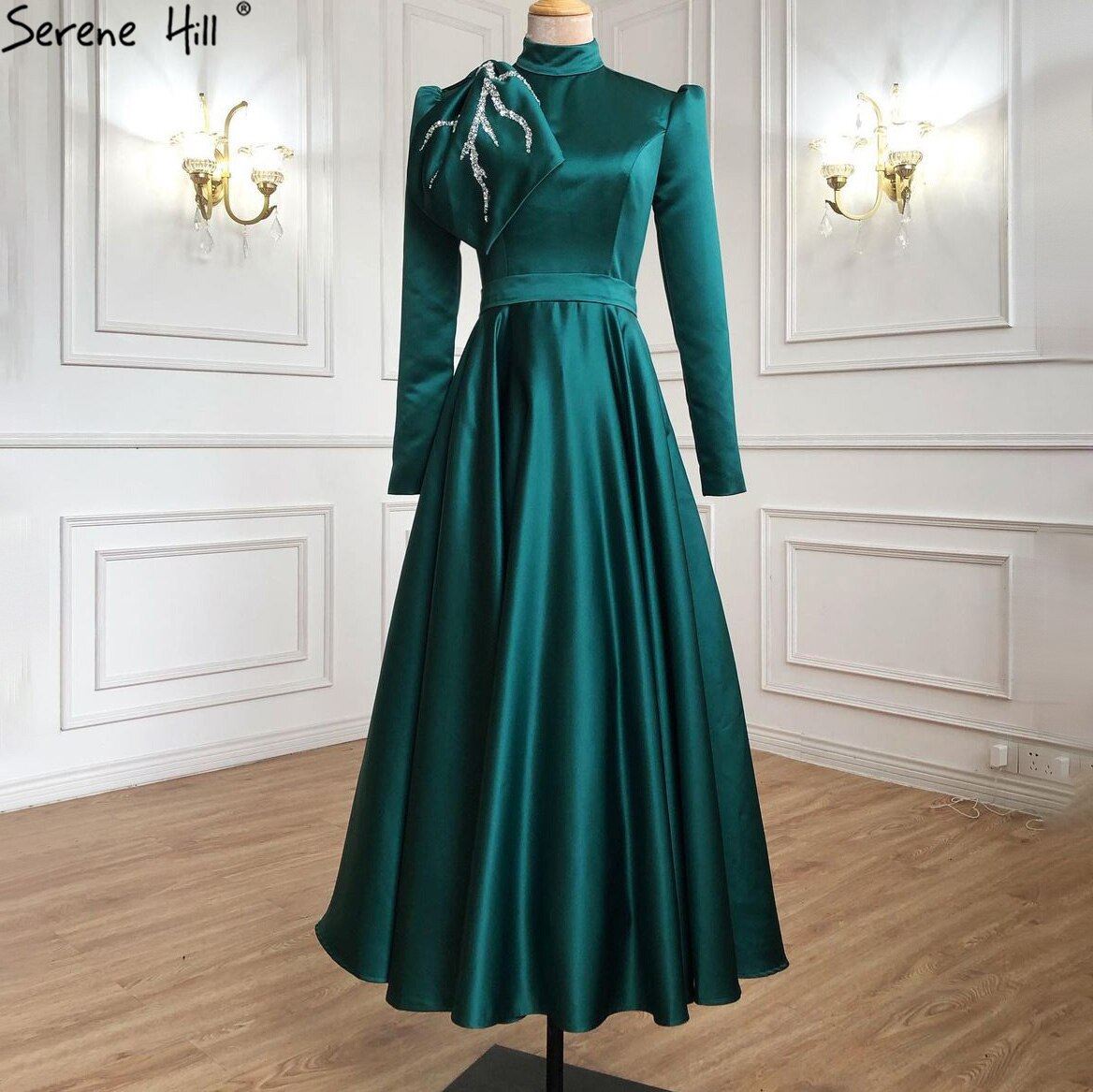 Robe de soirée trapèze verte musulmane, en satin perlé, pour femme, tenue de mariage, LA71115, 2025