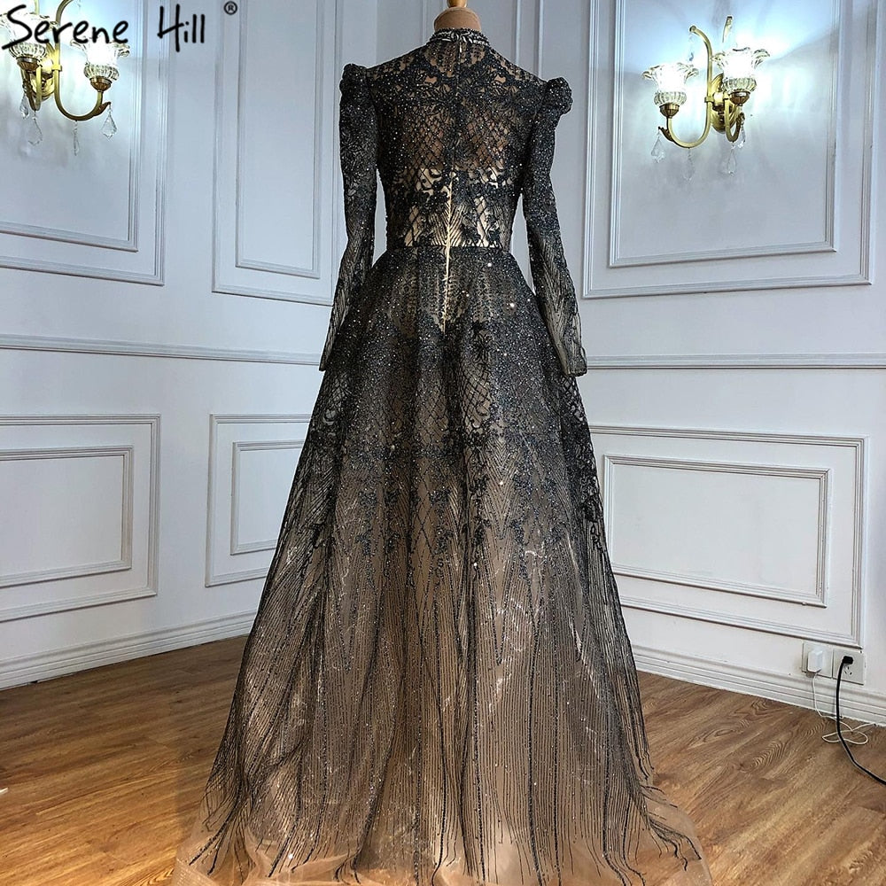 Robe de soirée de luxe grise style musulman, coupe trapèze, avec perles, pour femme, tenue de mariage, LA71126, 2025