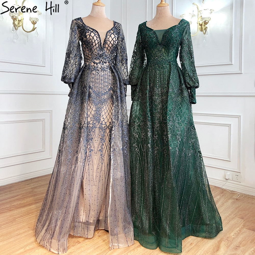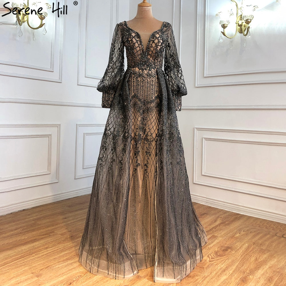 Robe de soirée sirène grise de luxe avec traîne et perles pour femme musulmane, modèle LA71056, 2025
