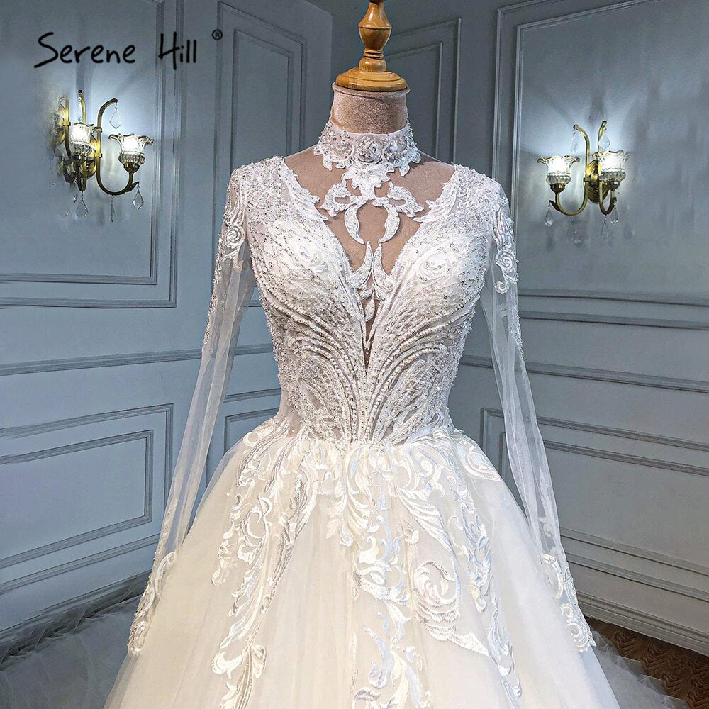Robe de mariée musulmane de luxe ivoire 2025, coupe trapèze, robe de mariée de luxe perlée, HA2499, sur mesure