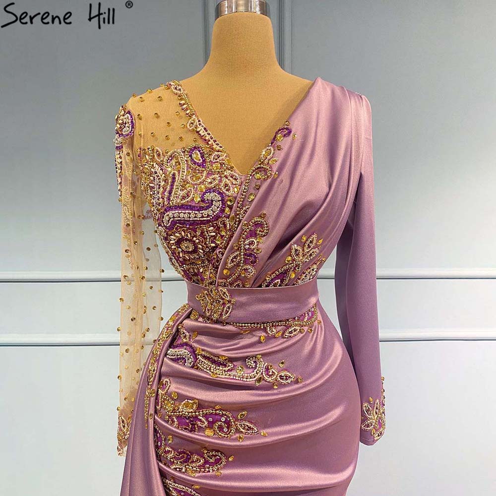 Robe de soirée sirène violette en satin, élégante et luxueuse, avec perles, pour femme, modèle LA71364, 2025