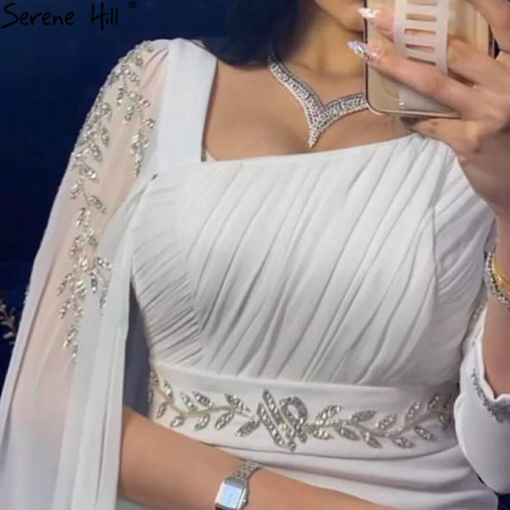 Robe de soirée sirène en satin blanc à manches cape, élégante et sexy, pour femme, modèle LA70712, 2025