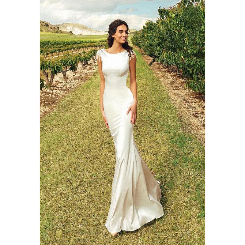 Robe de bal de mariage sirène simple et sexy, dos nu, sans manches