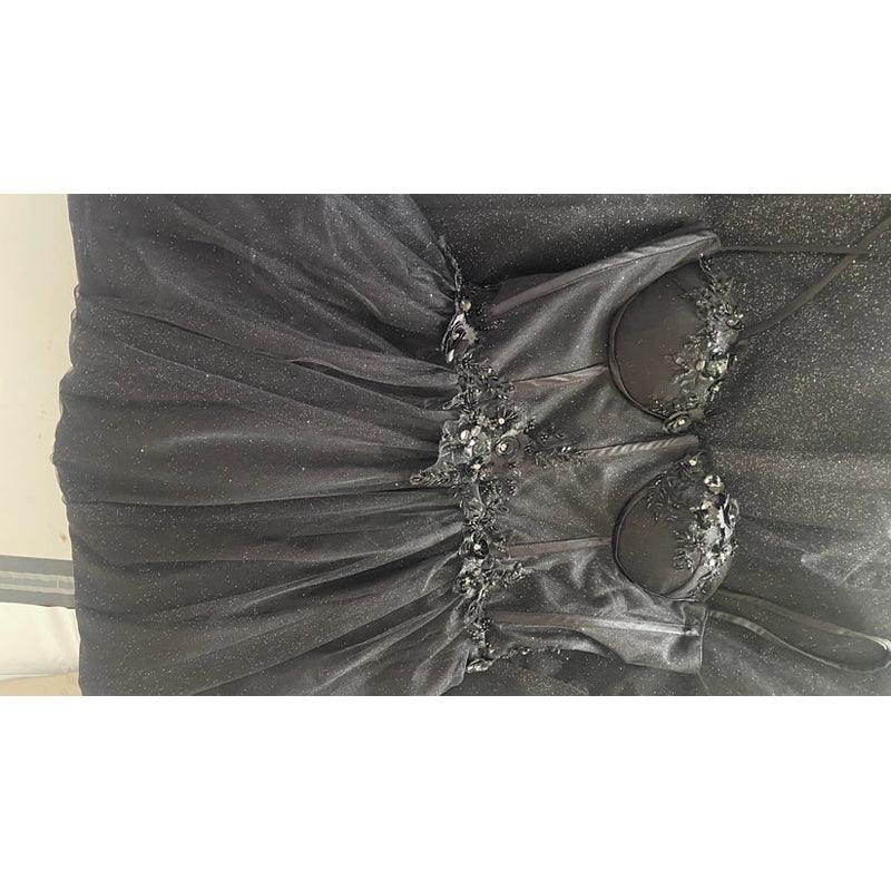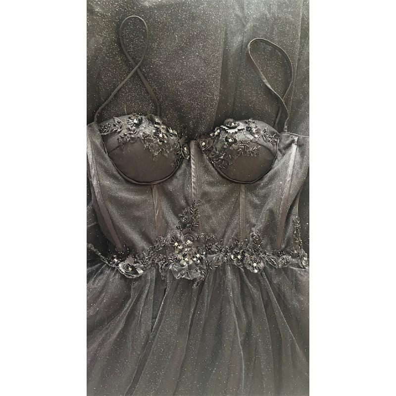 Robe de bal longue à bretelles spaghetti et appliques en tulle avec fente