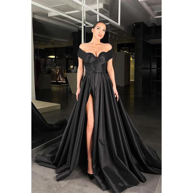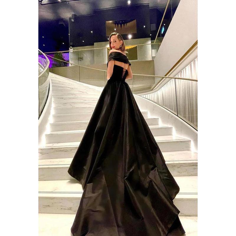 Robe de bal longue trapèze froncée à paillettes et épaules dénudées