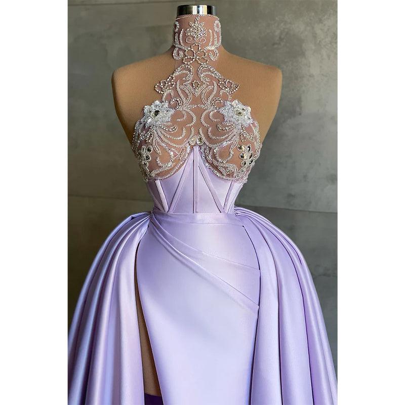 Robe de soirée longue et élégante à décolleté illusion et perles