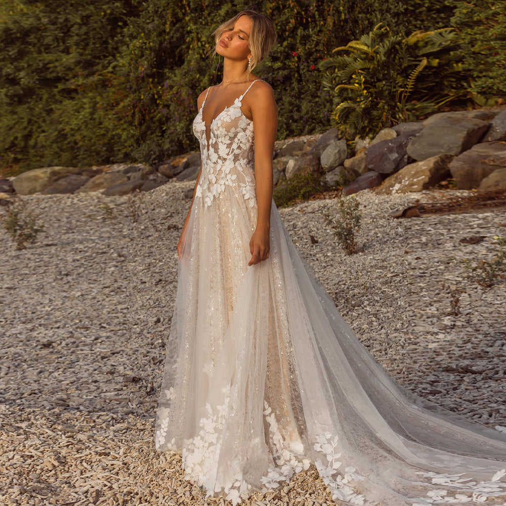 Robe de mariée tendance VIKTORIA pour la mariée, décolleté cœur, bretelles spaghetti, boutons, robe de mariée femme, personnalisation possible