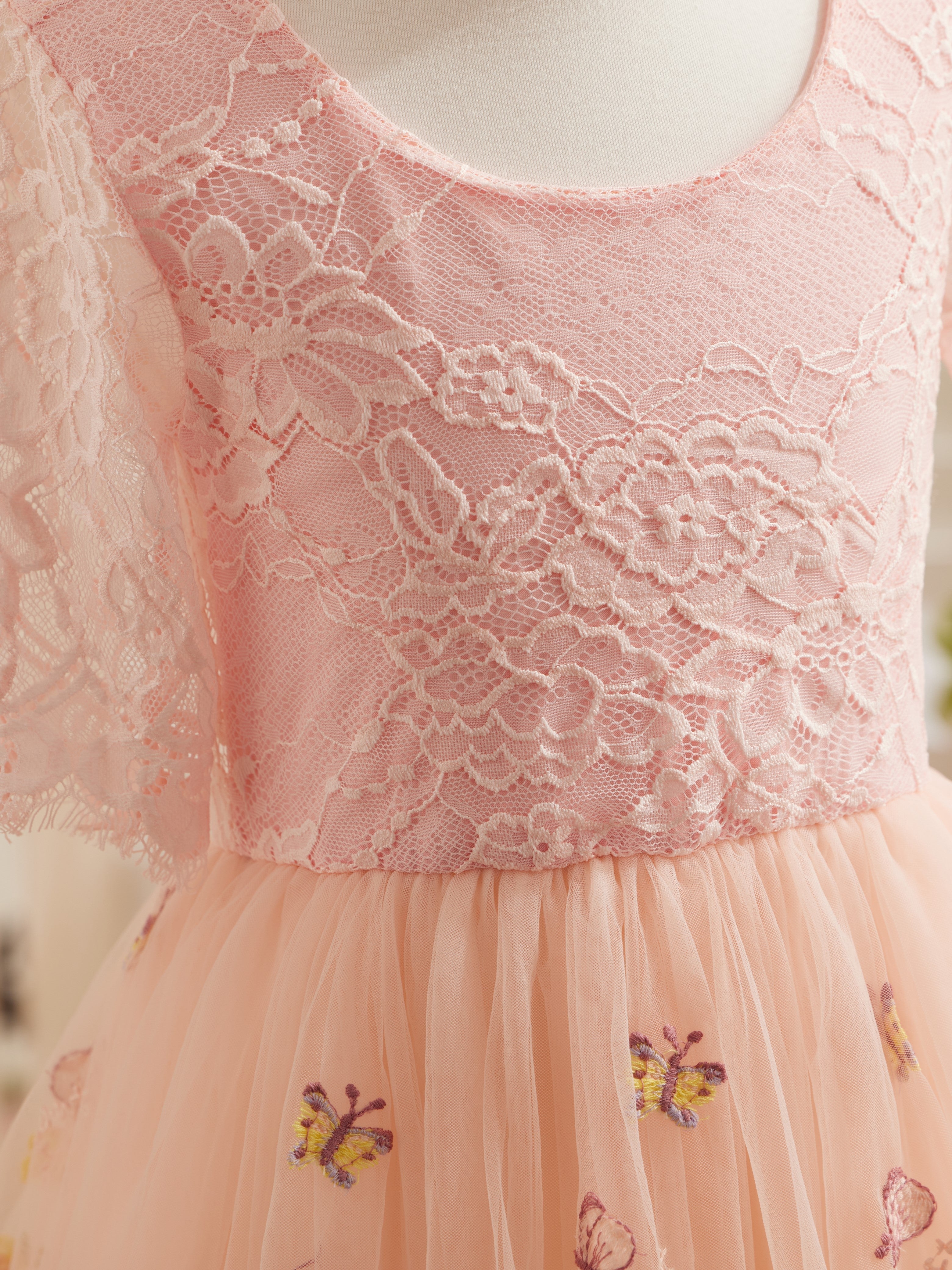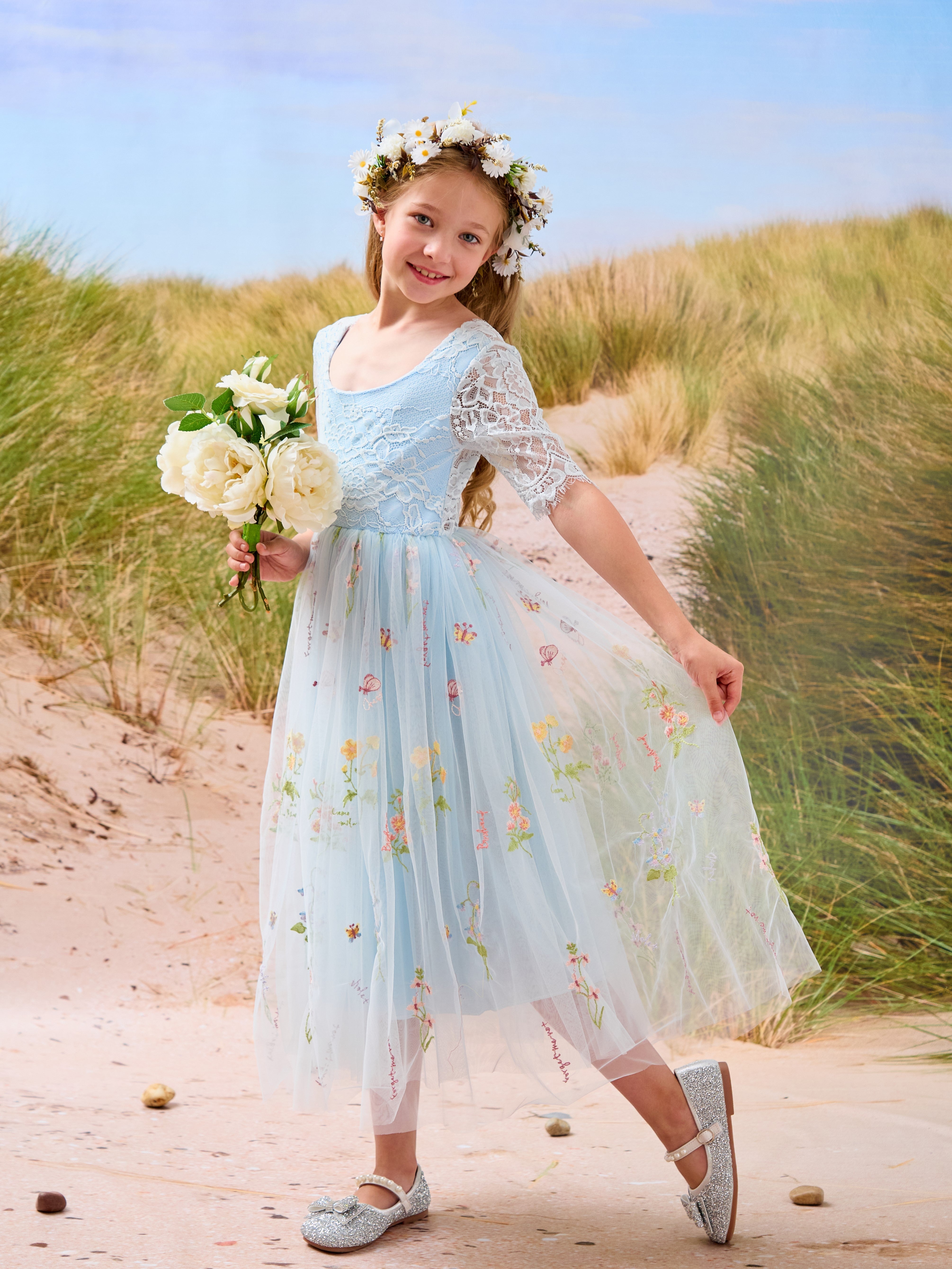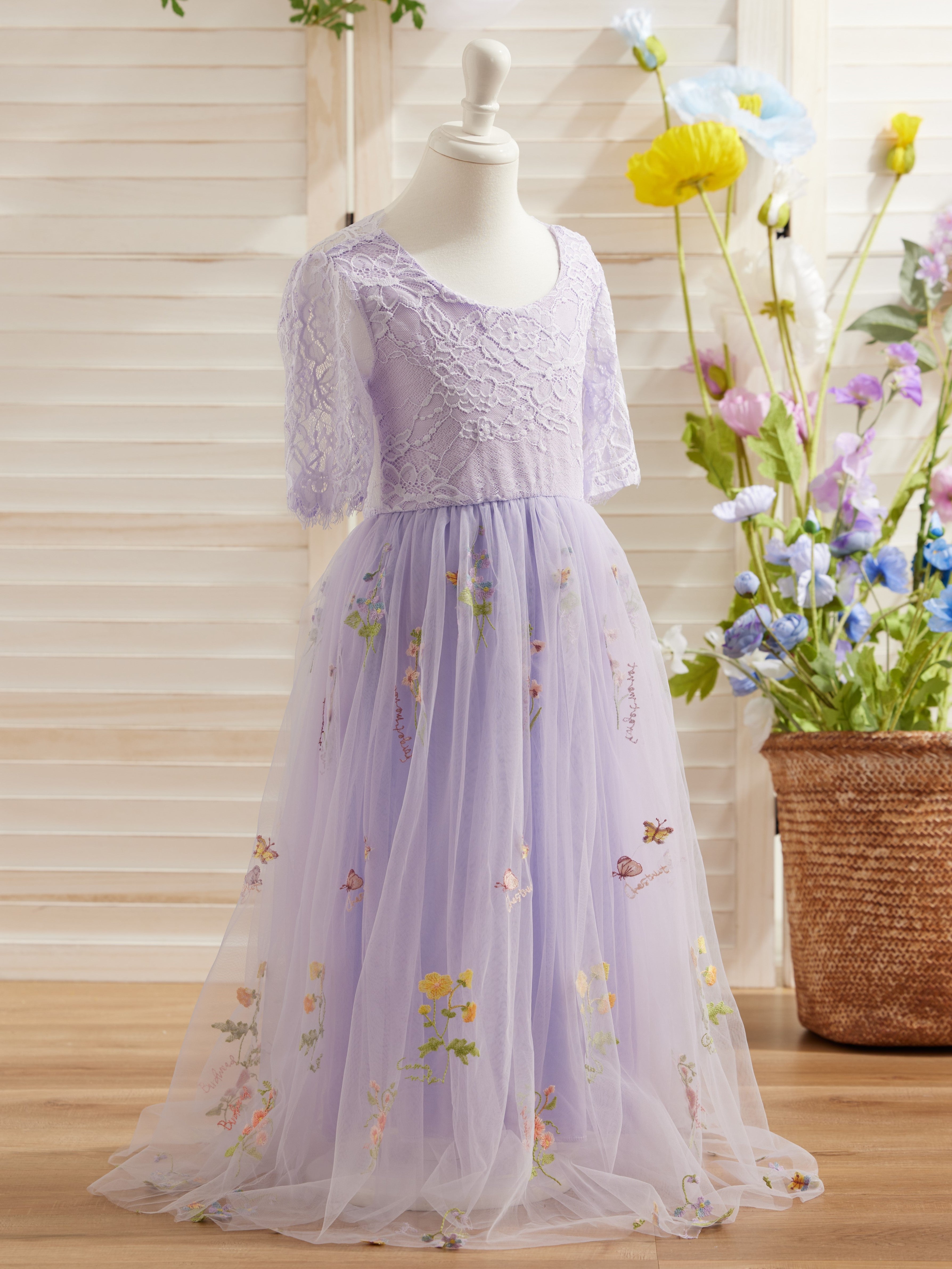 Sage Scoop Neck Cloth Surface and Tulle Flower Girl Dress (2003227581)