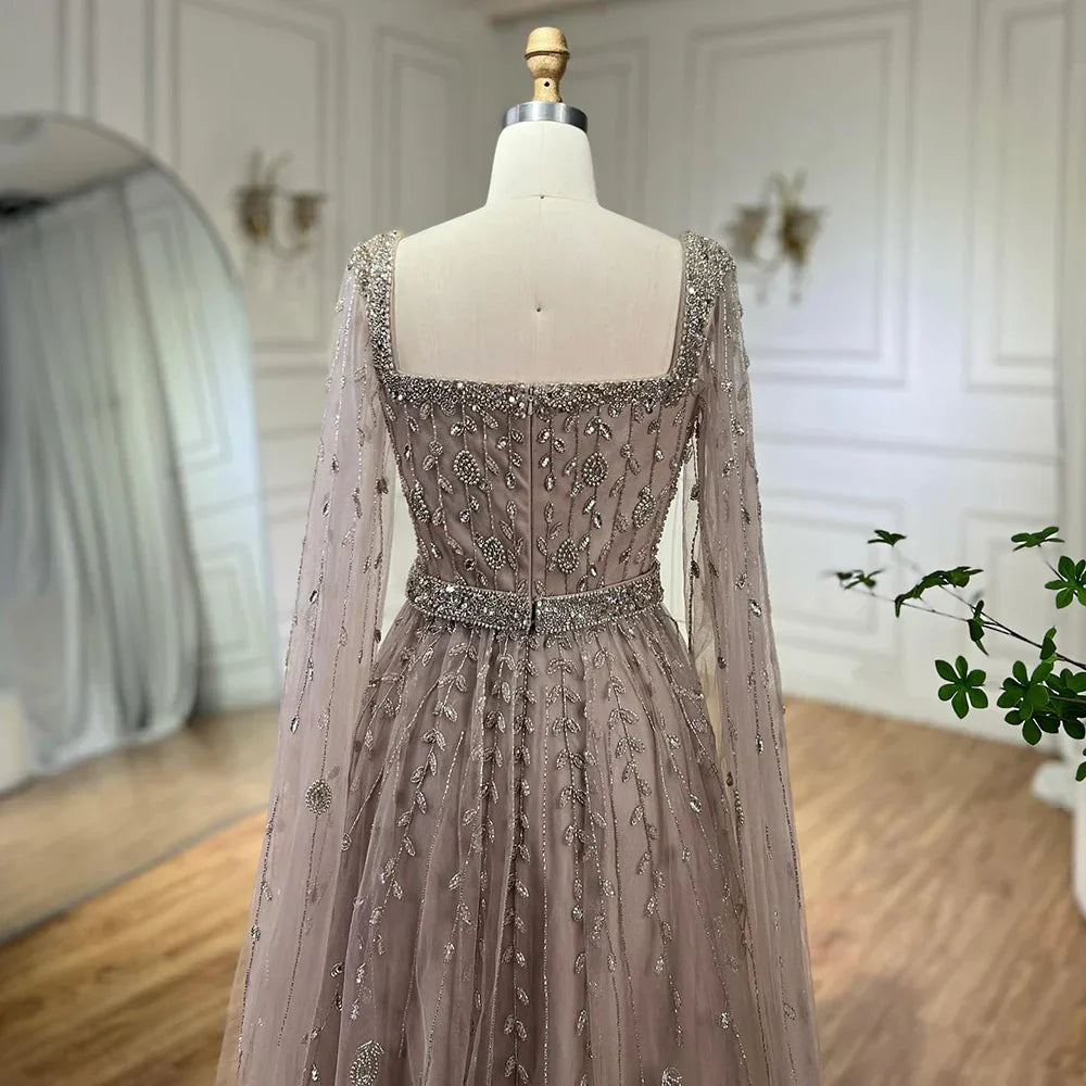 Muslim Caramel Beaded A-Line Luxury Evening Dress Gown with Cape Sleeves LA71803A