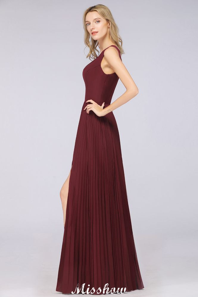 A-Line Chiffon V-Neck Sleeveless Bridesmaid Dress Floor-Length Ruffles Side Split Evening Gown