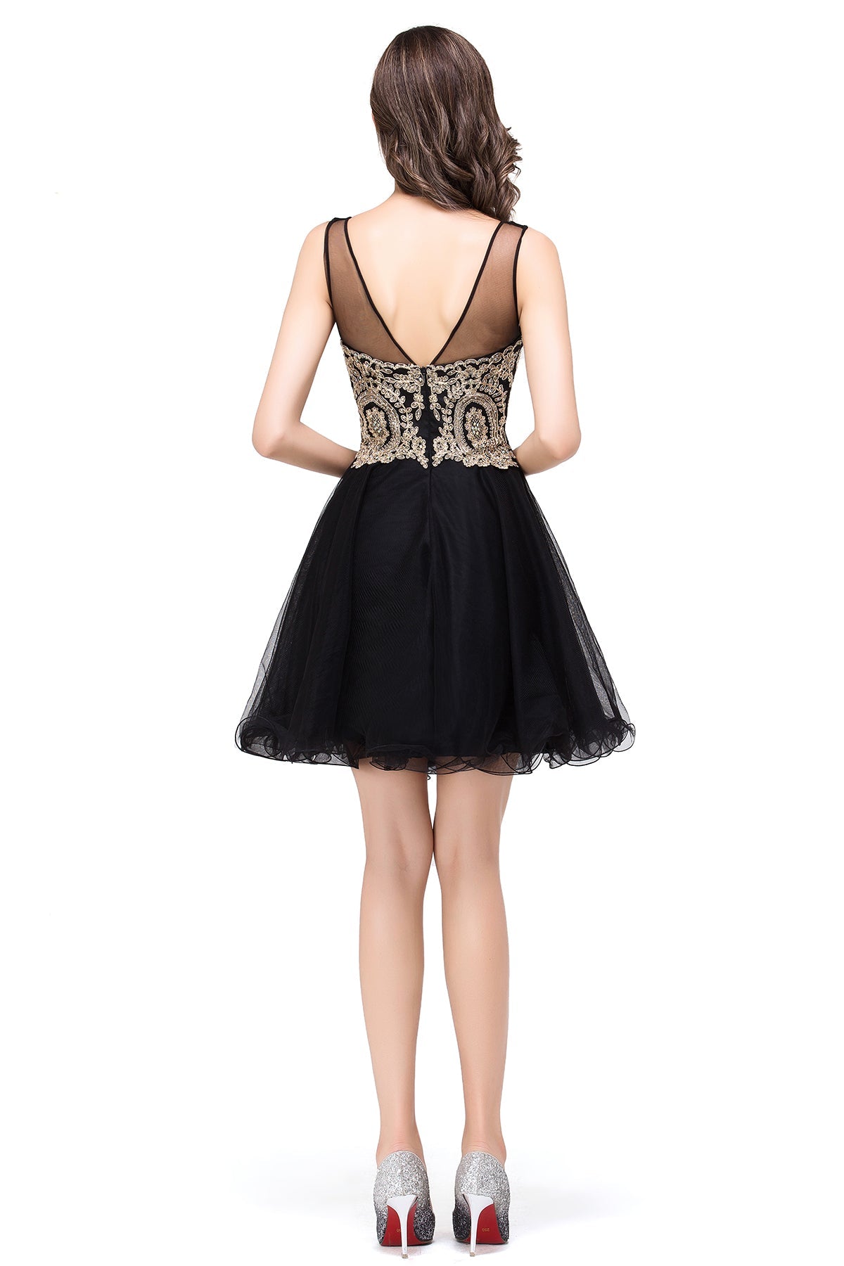 A-line Crew Short Sleeveless Appliques Prom Dresses