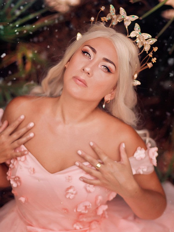 A-Line/Elegant Off-the-Shoulder Applique Tulle Sleeveless Floor-Length Prom Dresses