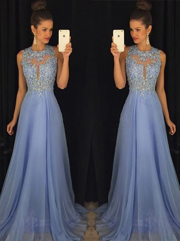 A-Line/Elegant Sleeveless Applique Chiffon Scoop Prom Dresses