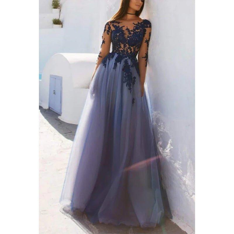 A-line Illusion Neckline Tulle Appliques Long Sleeves Prom Dress
