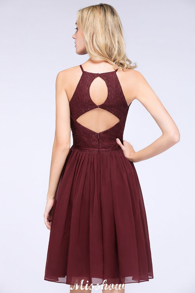 A-line Jewel Sleeveless Knee-Length Bridesmaid Dresses with Ruffle Chiffon Lace Party Dress