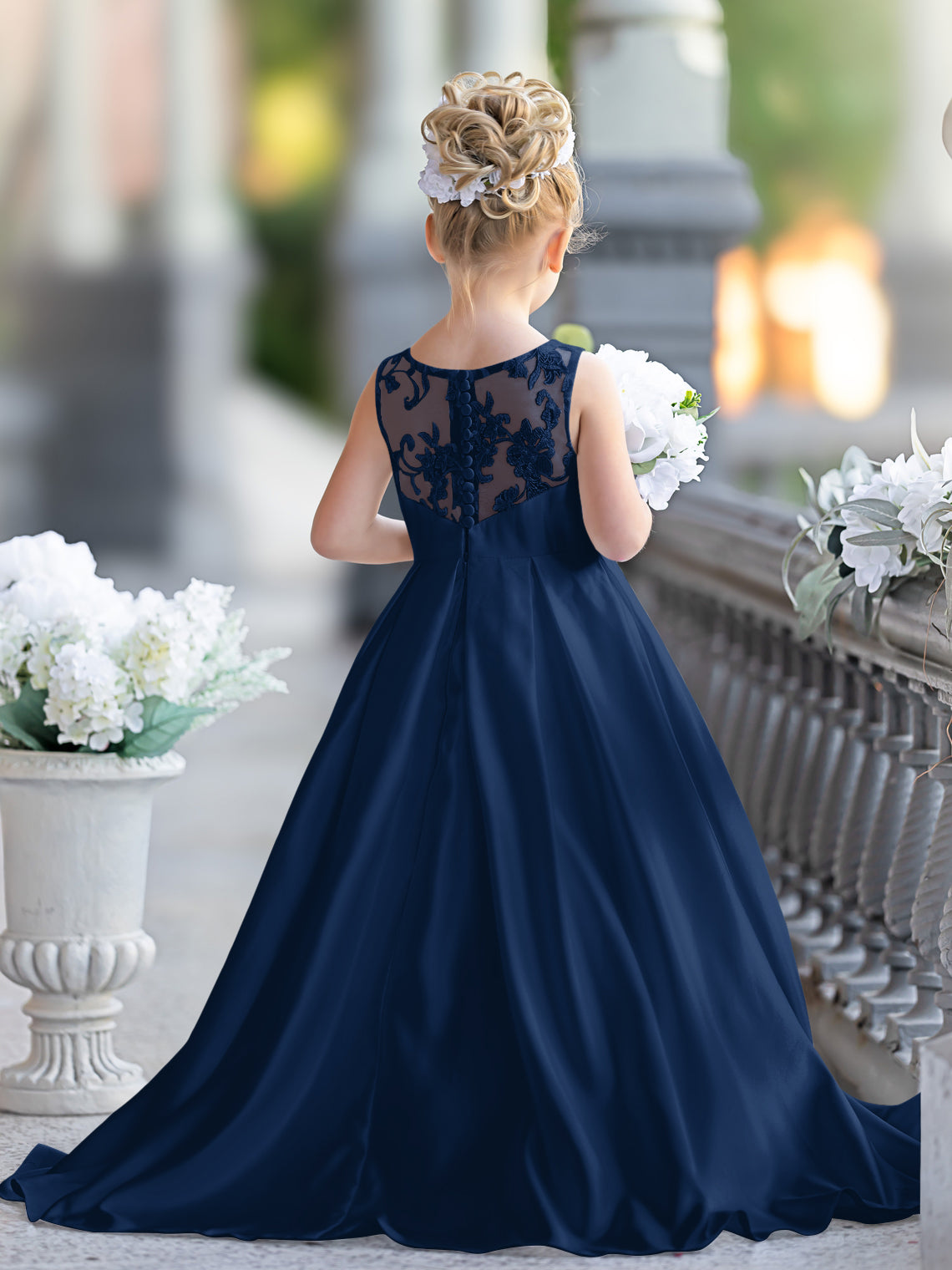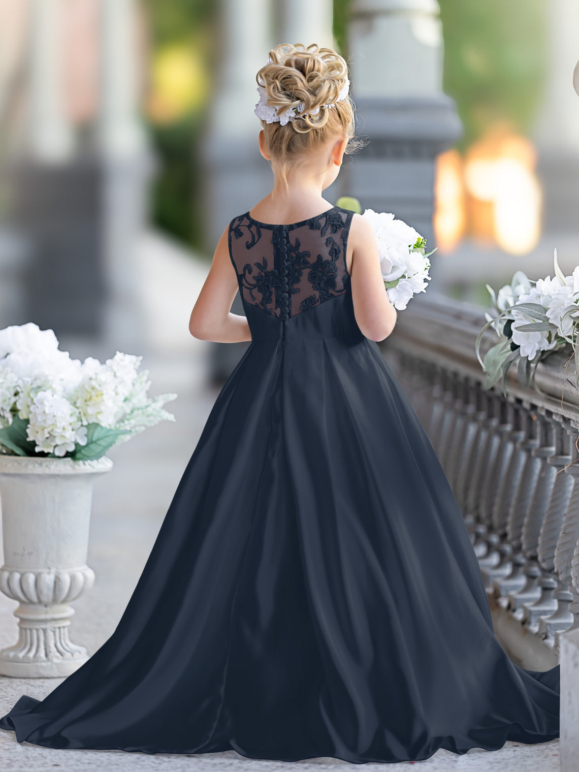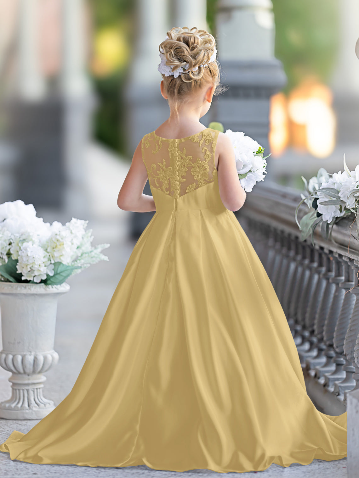 A-line Lace Satin Floor-length First Communion Flower Girl Dress