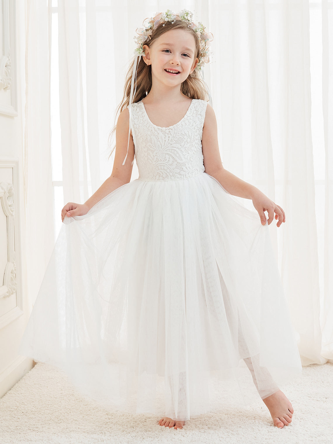 A-line Lace Tulle Ankle-length White Dress (2003227597)