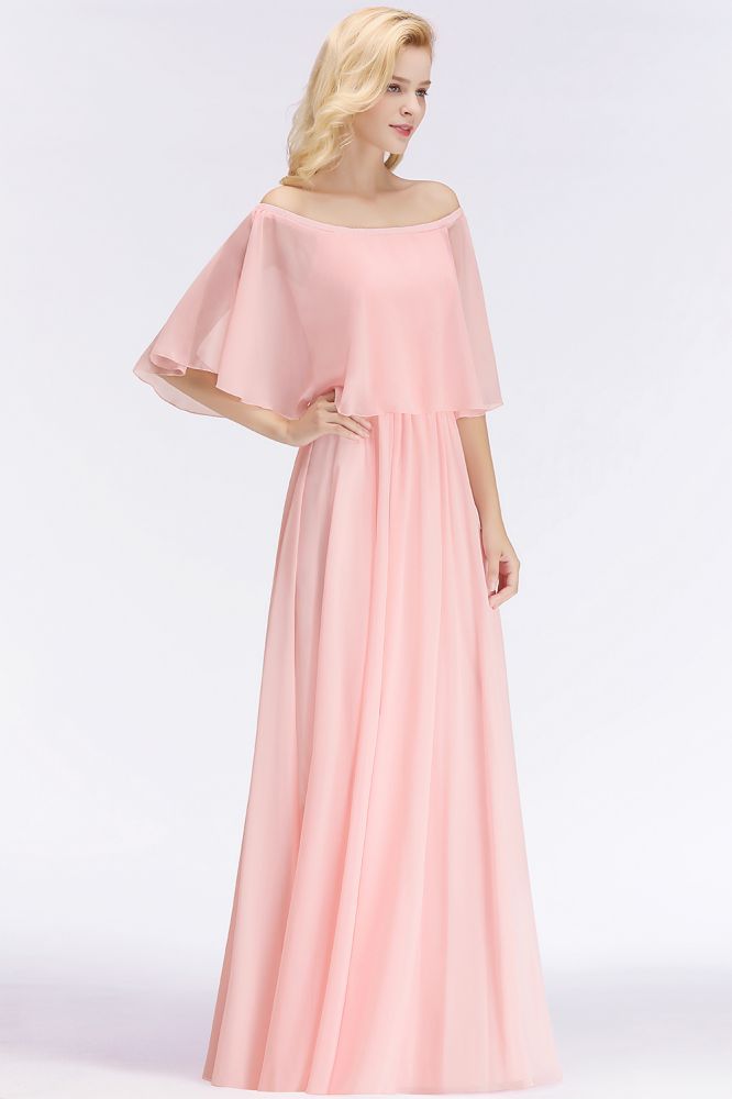 A-line Long Off-the-shoulder Pink Bridesmaid Dresses with Sleeves