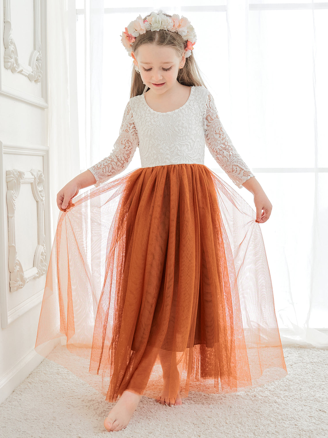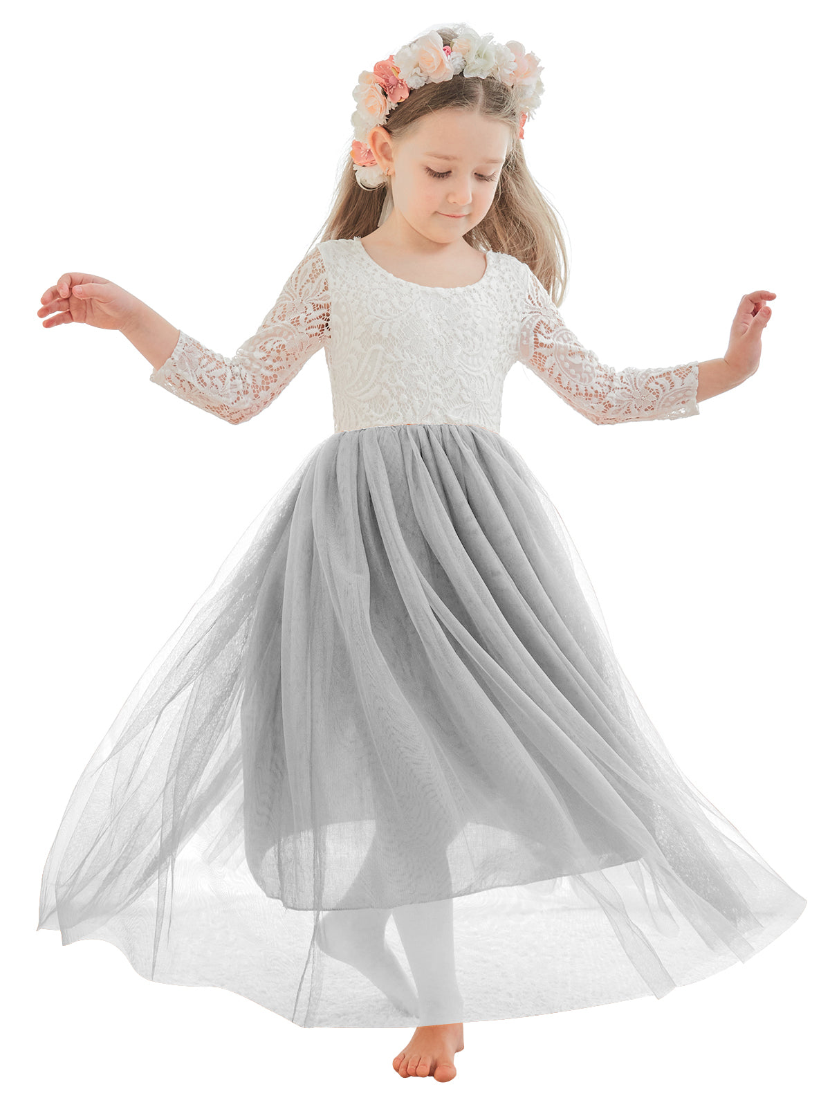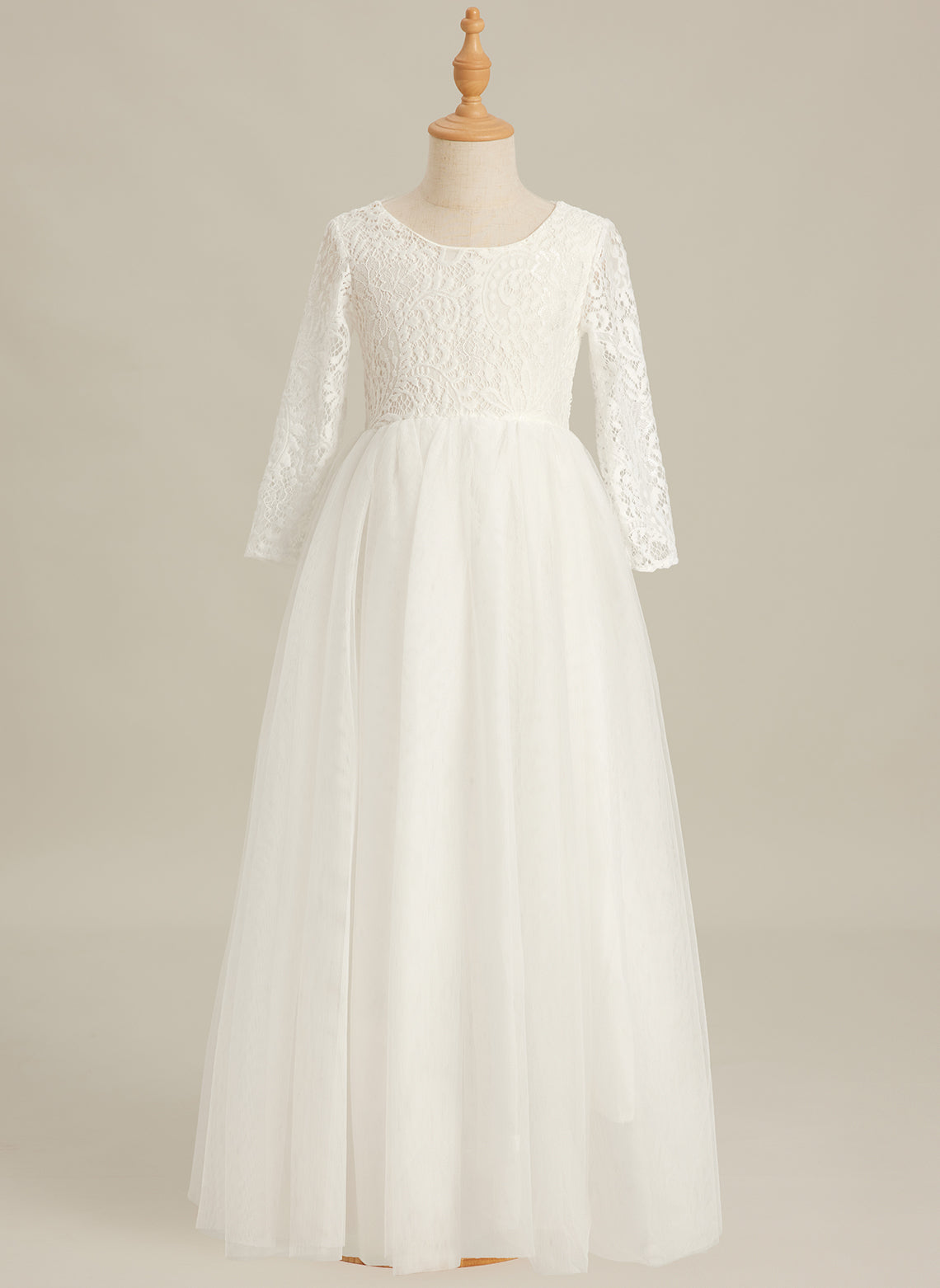 Angelic White Lace A-Line Long Sleeve Tulle Flower Girl Dress